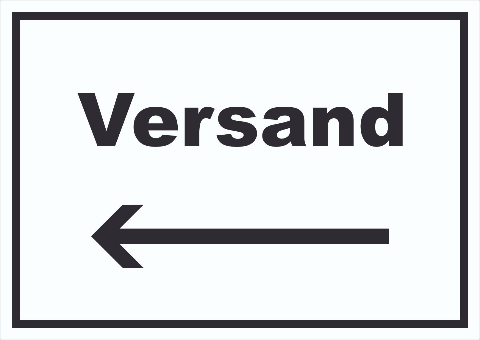 HB-Druck Hinweisschild Versand Schild mit Text und Richtungspfeil links Lieferung shipping, wetterfest, stabil, UV-beständig, kratzfest