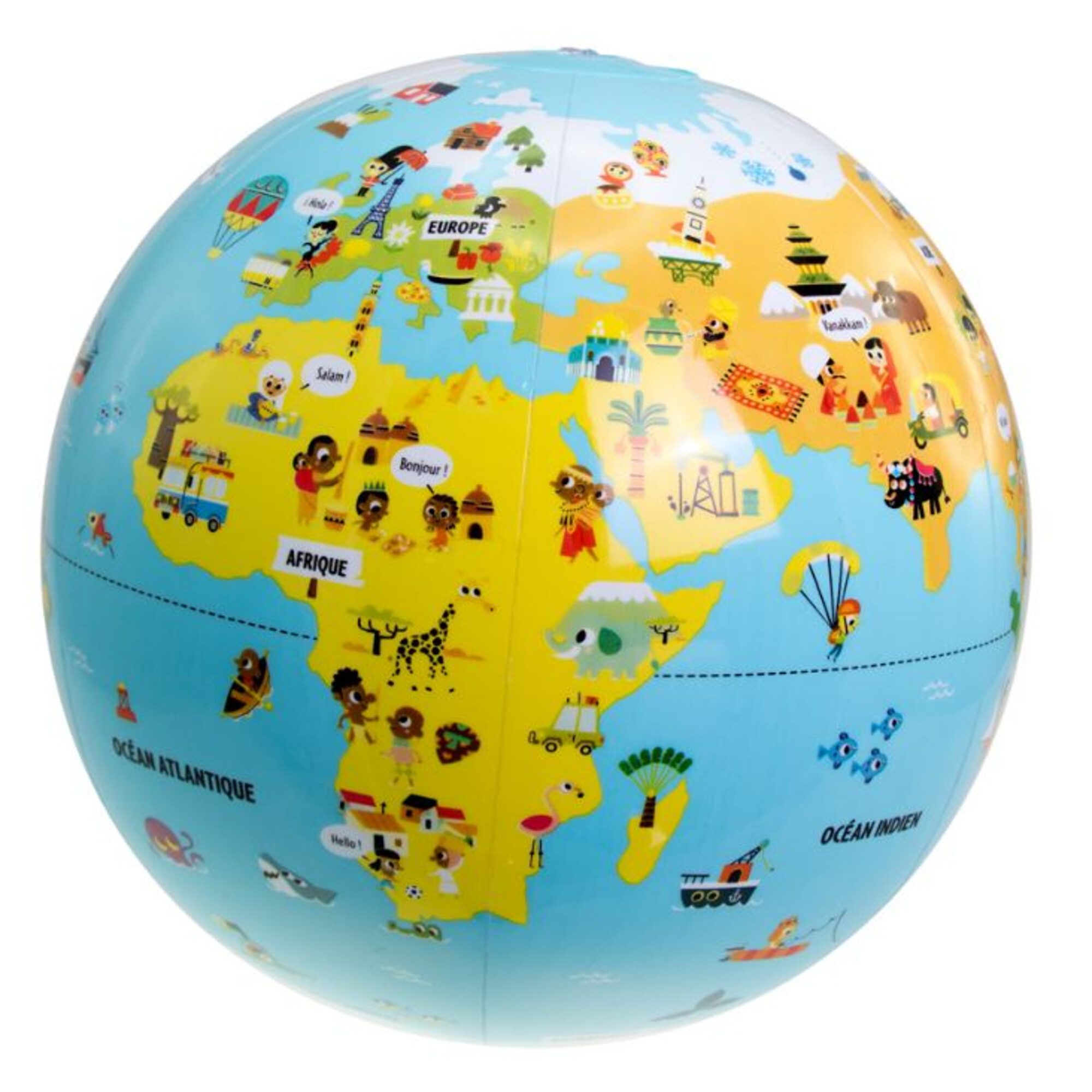 Mit diesem aufblasbaren Globus lernen Kinder spielend die Länder dieser Welt kennen. Der Globus in originellem und farbenfrohem Design, lehrt die Länder, Kontinente, Meere, Hauptstädte und Breitengrade der Erde. Es sind 3 Spielvorschläge enthalten, die es noch leichter machen unsere Erde kennenzulernen.