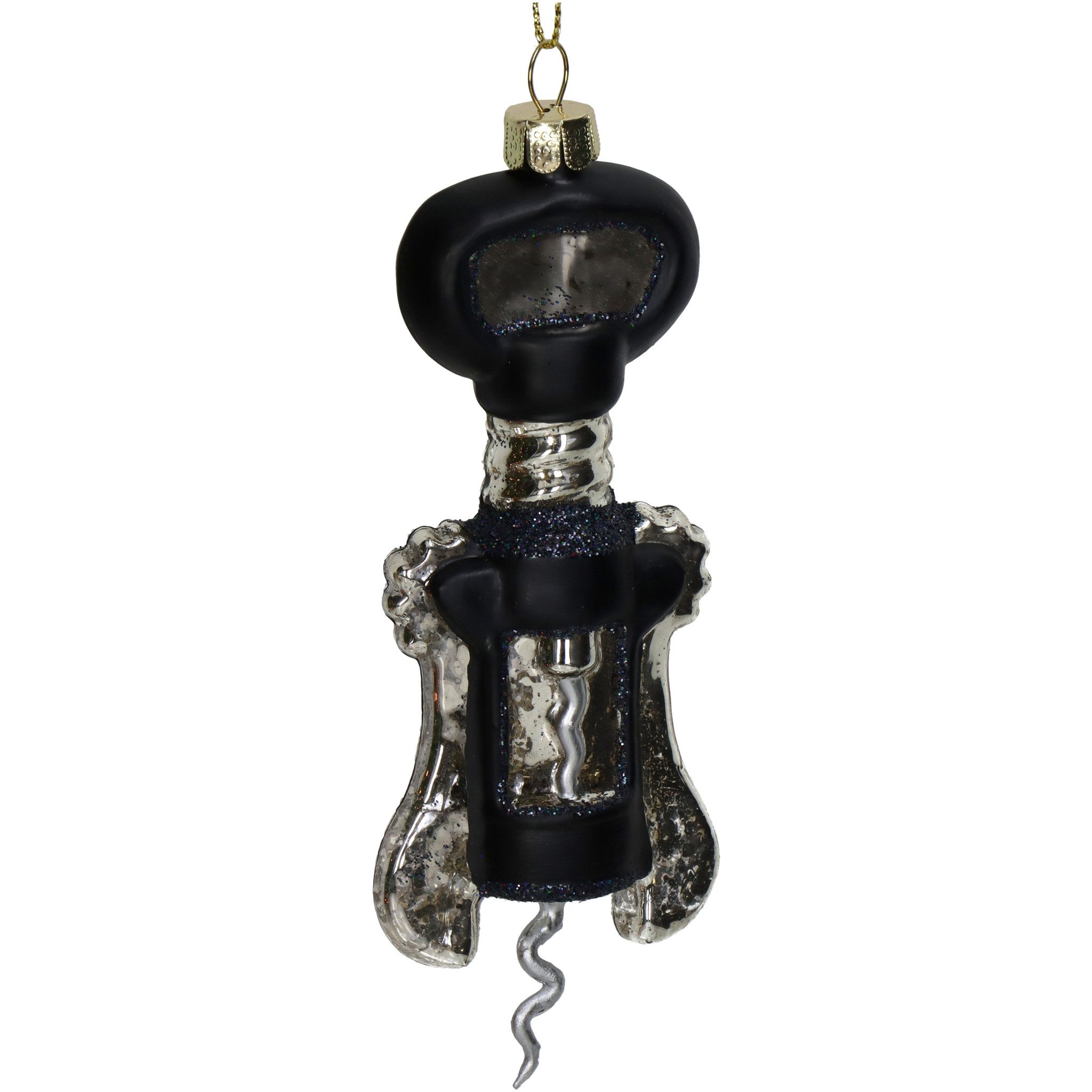 PRODUKT: Weihnachtsbaum Anhänger - Hebelkorkenzieher / MATERIAL: Glas, Keramik - Polyresin / GRÖSSE (HxLxB): ca. 14 x 5,1 x 2,5 cm / INHALT: 1 Christbaumfigur / FARBE: schwarz -