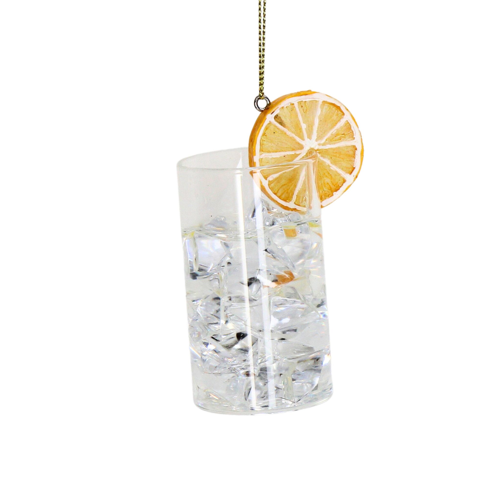 PRODUKT: Weihnachtsbaum Anhänger - Cocktailglas Gin Tonic / MATERIAL: Glas, Kunststoff / GRÖSSE (HxLxB): ca. 9 x 5,5 x 4 cm / INHALT: 1 Christbaumfigur / FARBE: orange - klar