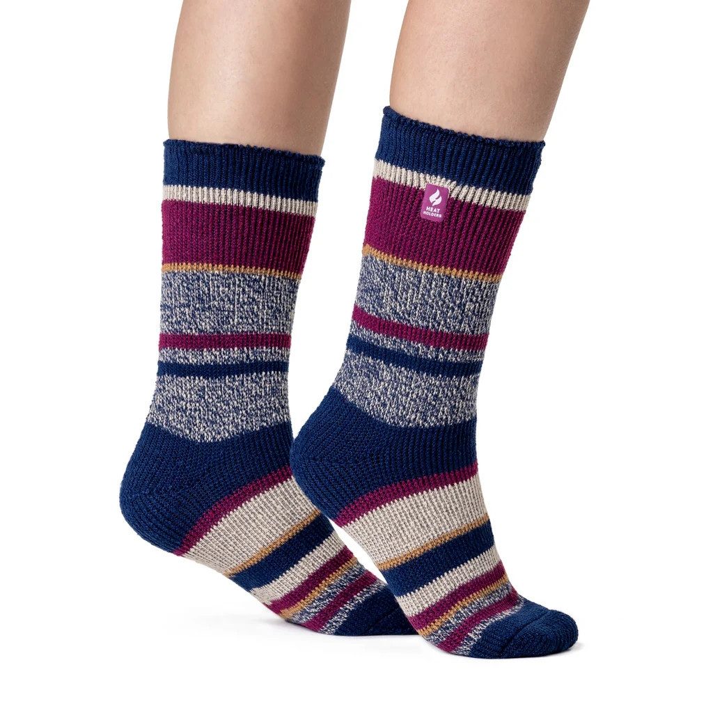 Unsere Original Seascale Twist Stripe-Socken für Damen in Marineblau und Pink halten Ihre Füße auch an den kältesten Tagen warm. Die Innenseite jeder dieser dicken Thermosocken wurde intensiv gebürstet, um sich superweich anzufühlen und warme Luft dicht an der Haut einzuschließen, sodass Ihre Füße länger warm bleiben. Ganz gleich, ob Sie besonders warme Socken für die Natur benötigen oder einfach nur, um es sich zu Hause gemütlich zu machen, unsere Original-Thermosocken für Damen machen Ihr Leben wärmer.