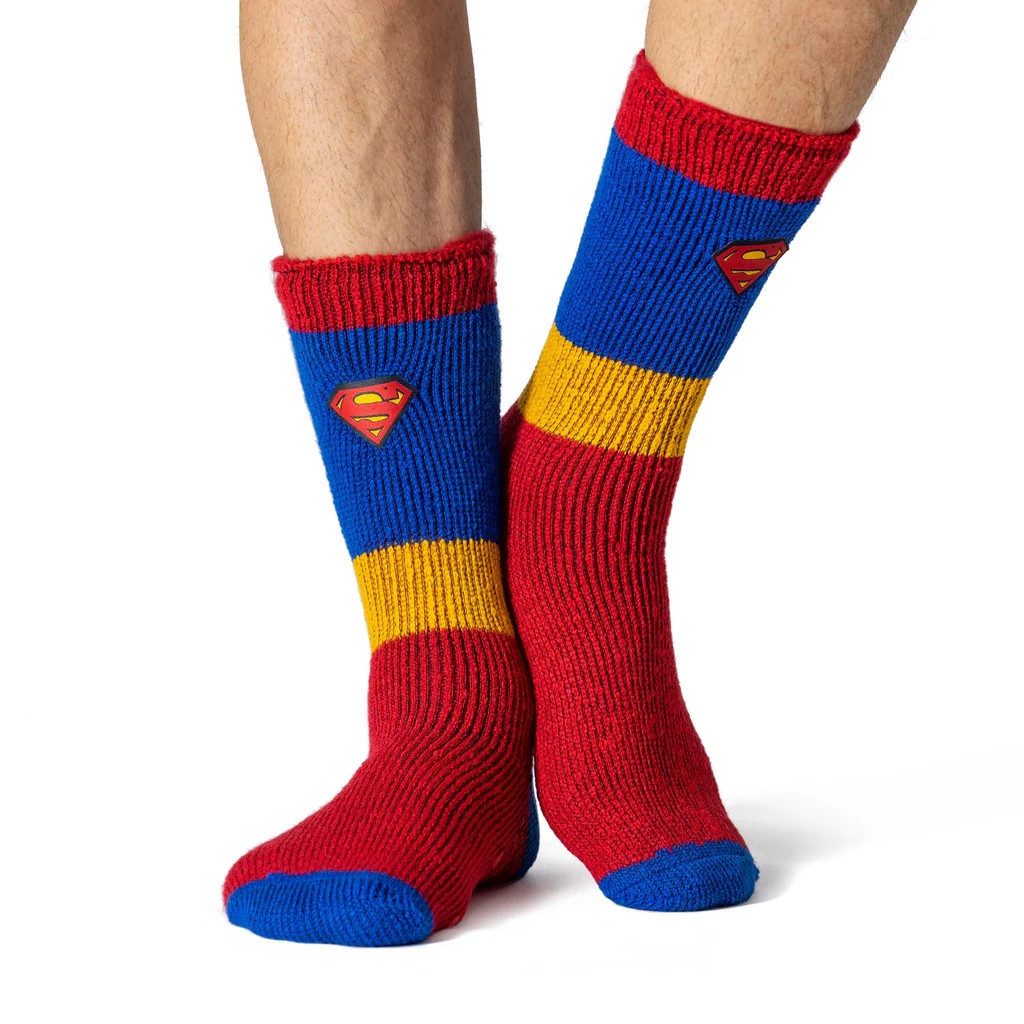 Diese Original-Character-Slipper-Socken für Herren im Superman-Design eignen sich perfekt zum Entspannen zu Hause. Sie tragen Supermans klassisches Logo in einem farbenfrohen rot-blau-goldenen Streifendesign, das an sein Outfit angelehnt ist, mit Punktgreifern an der Sohle. Unsere lizenzierten Charakter-Thermo-Slipper-Socken erinnern an den Spaß, die Action und die Farben der beliebtesten Filme, Comics und Zeichentrickfilme der Welt. Sie sind das perfekte Geschenk für jeden Fan, damit er seine Lieblingscharaktere überall hin mitnehmen kann! Rutschfeste Greifer an der Sohle jeder Socke sorgen für sicheren Halt auf poliertem Holz oder Bodenfliesen.