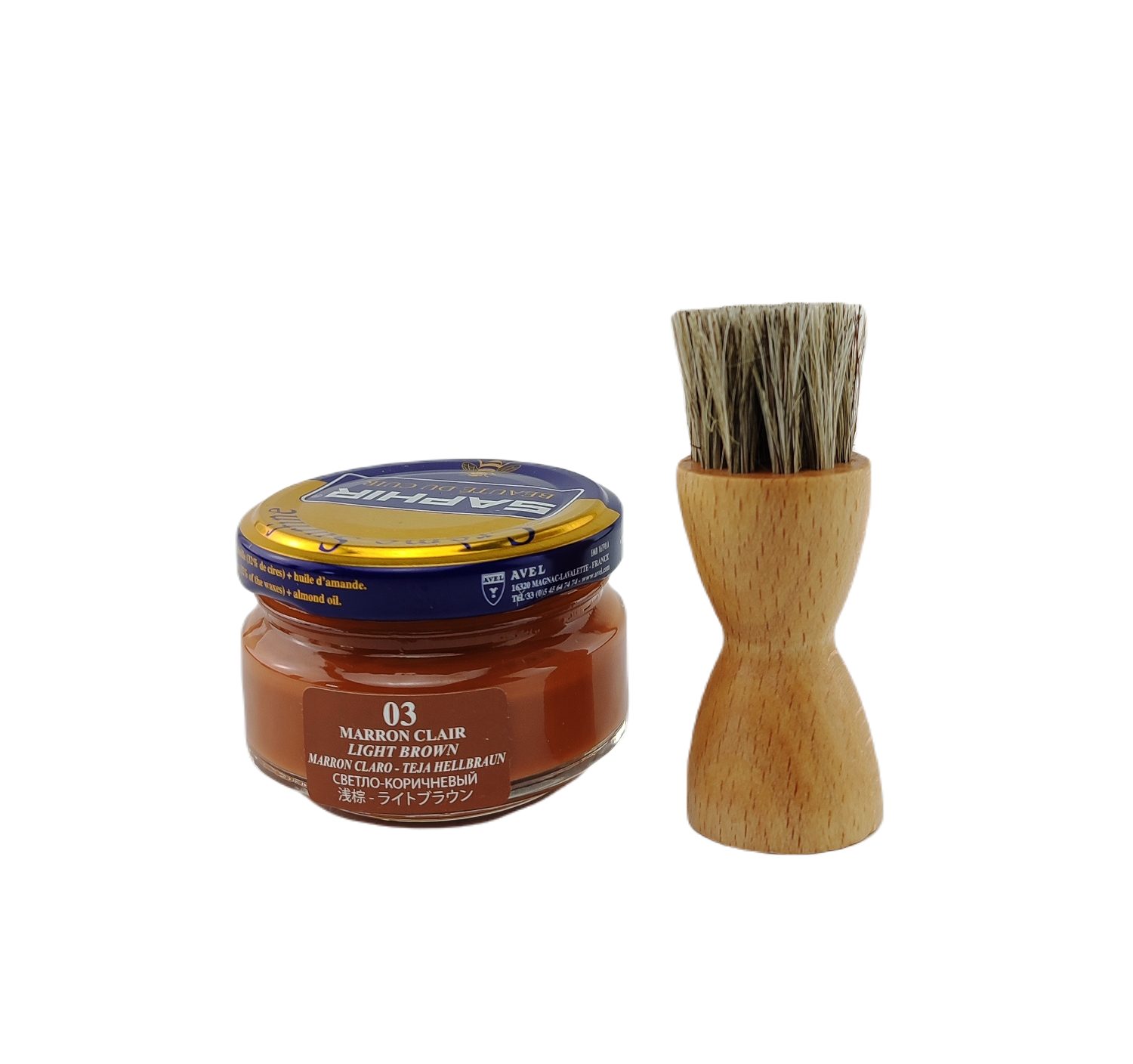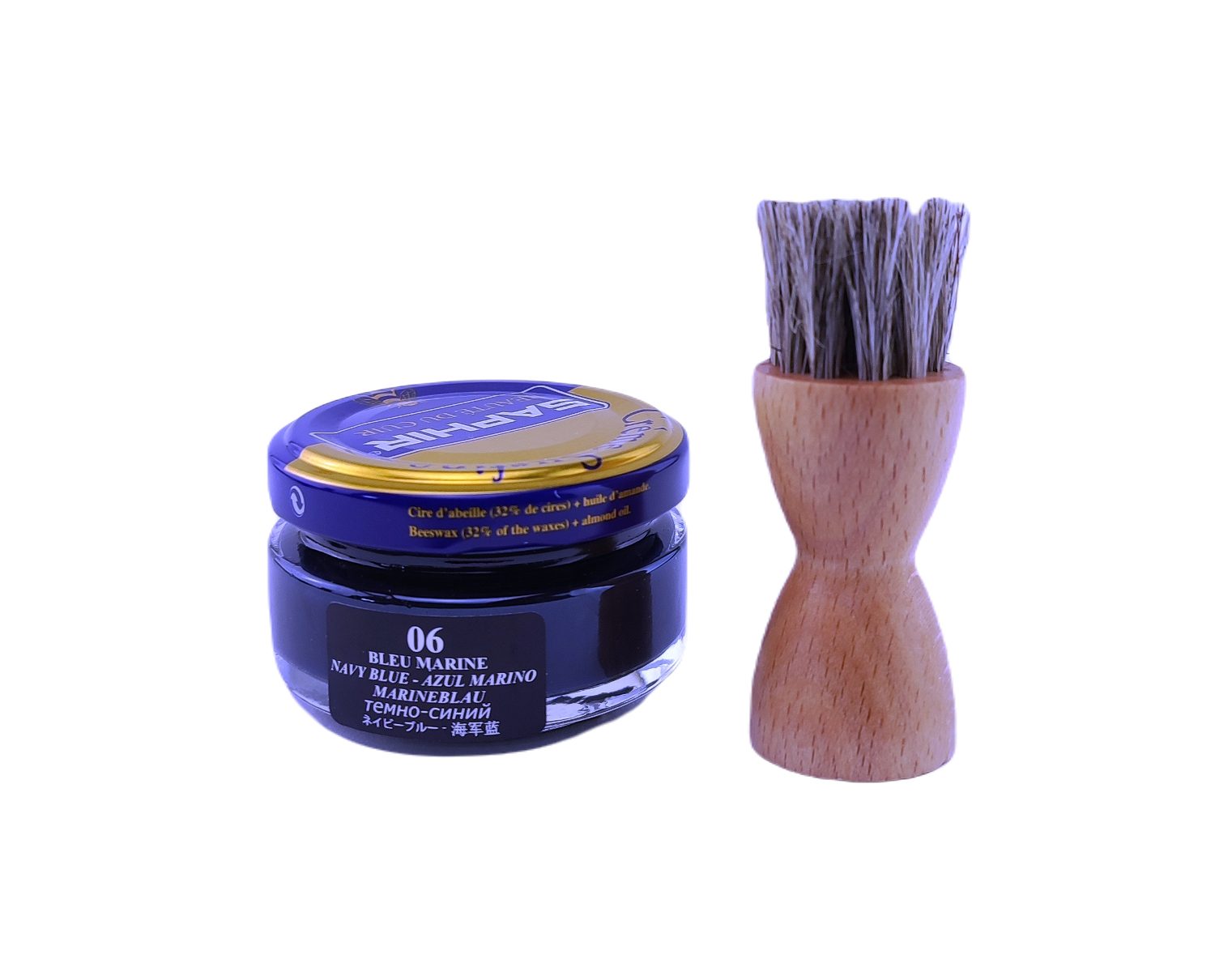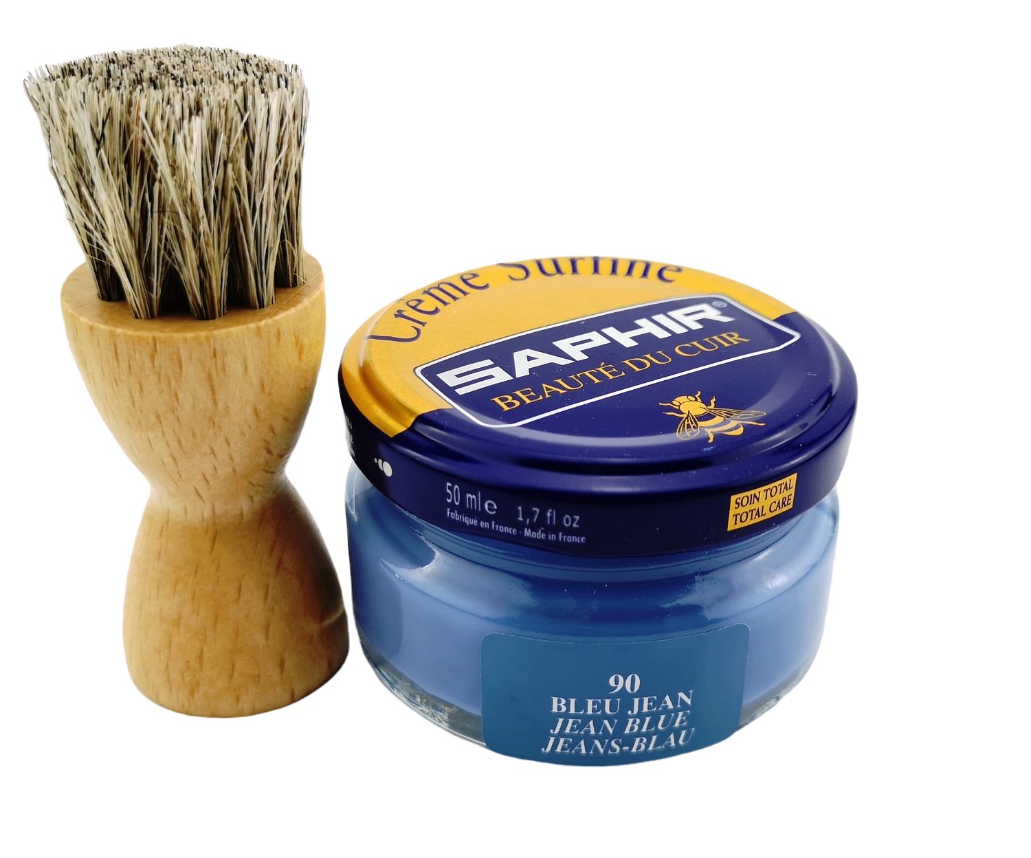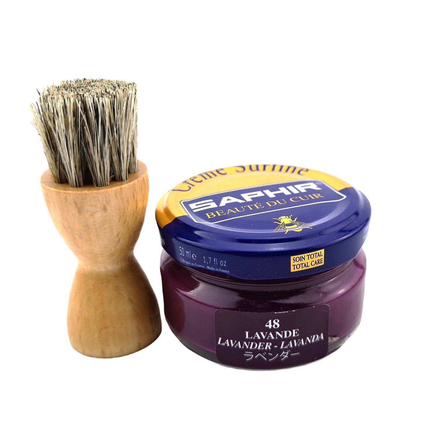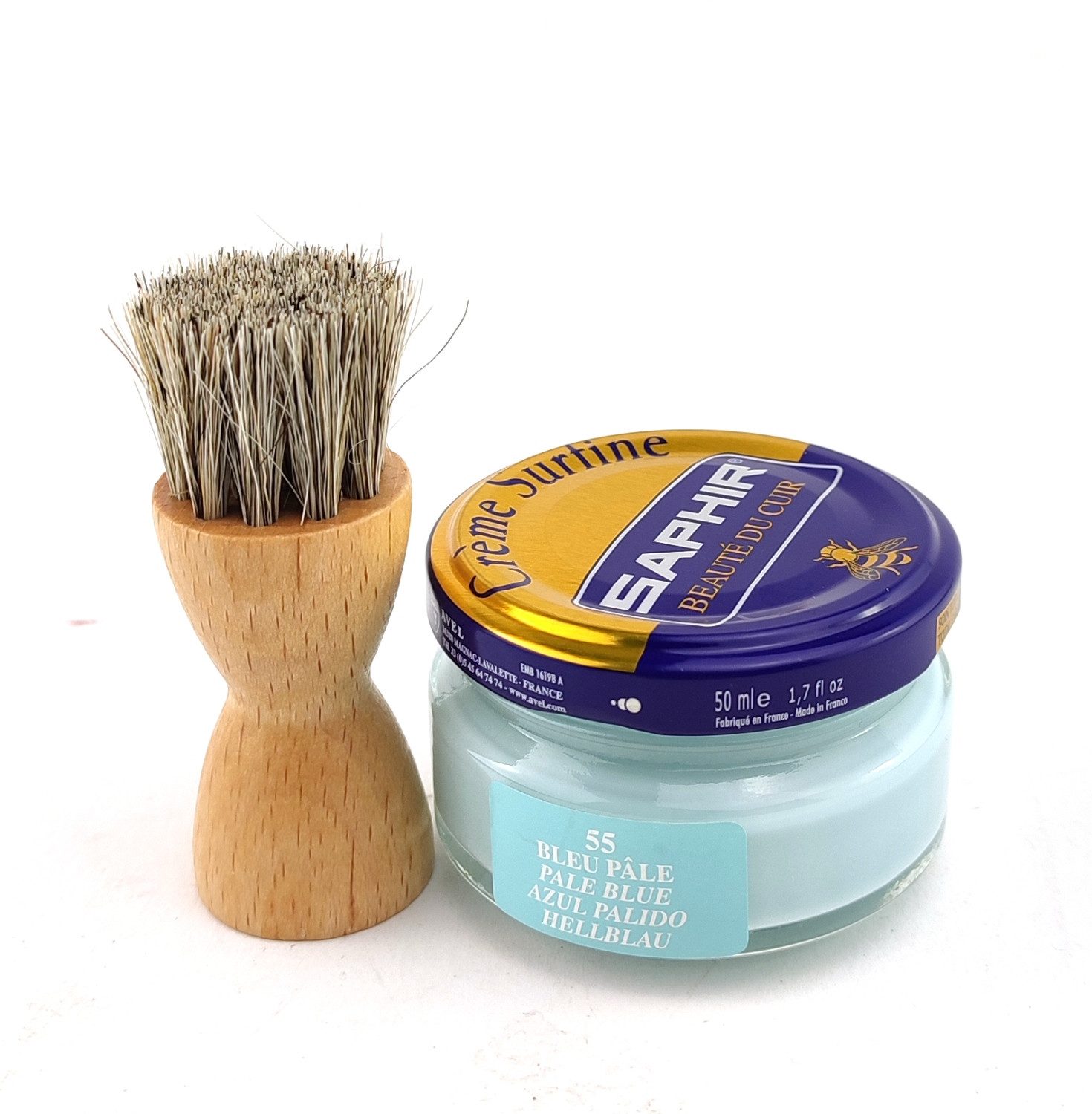 Lederpflegeset mit Creme Surfine enthält eine Rosshaar-Tiegelbürste
