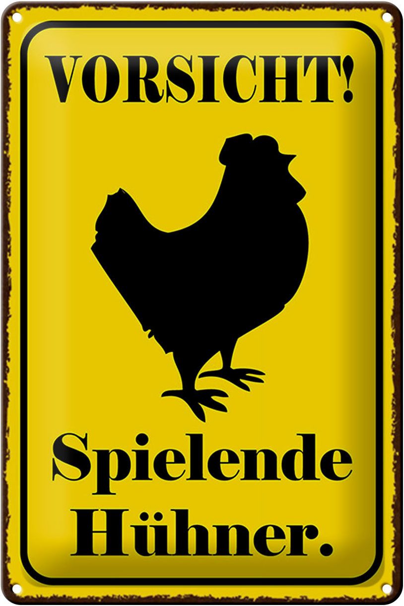 Das Blechschild "Vorsicht spielende Hühner" in der Размер 20x30 cm bzw. 30x20 cm ist eine dekorative Metalltafel, die sich ideal für Ihr Zuhause eignet. Das gewölbte Design verleiht ihm eine ansprechende Optik und der hervorragende Druck sorgt für ein hochwertiges Erscheinungsbild. Mit abgerundeten Ecken und umgeschlagenen Kanten hat das Schild nicht nur einen ästhetischen Vorteil, sondern auch praktische vorgebohrte Löcher an allen vier Ecken zur einfachen Befestigung.