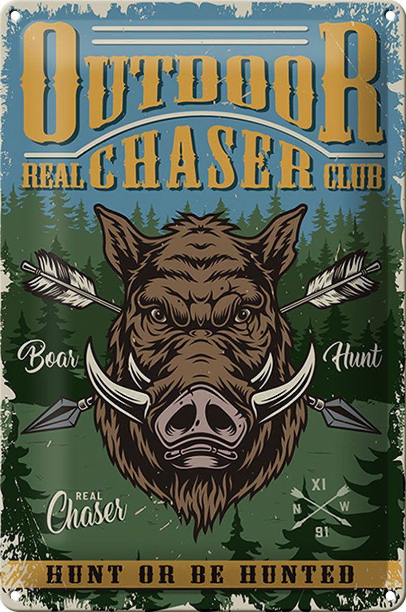 Das Blechschild "Jagd real chaser club" in der Размер 20x30 cm bzw. 30x20 cm ist eine dekorative Metalltafel, die sich ideal für Ihr Zuhause eignet. Das gewölbte Design verleiht ihm eine ansprechende Optik und der hervorragende Druck sorgt für ein hochwertiges Erscheinungsbild. Mit abgerundeten Ecken und umgeschlagenen Kanten hat das Schild nicht nur einen ästhetischen Vorteil, sondern auch praktische vorgebohrte Löcher an allen vier Ecken zur einfachen Befestigung.