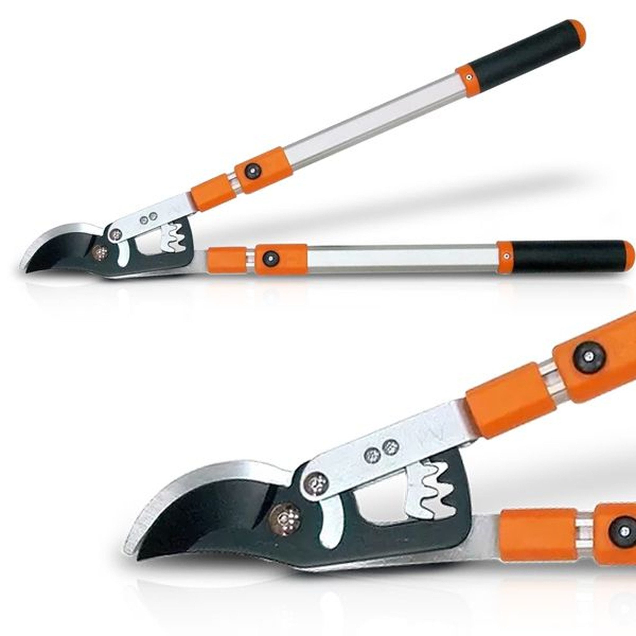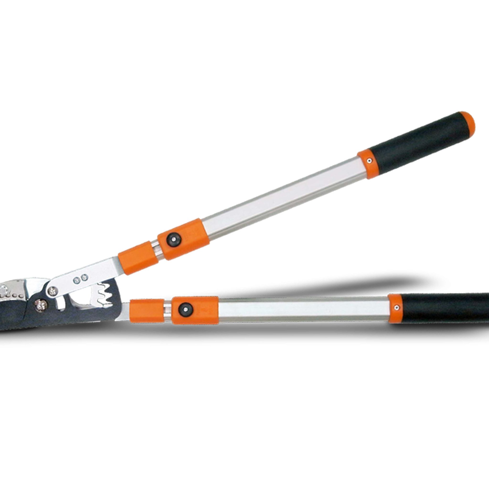 Mit den HECHT Getriebeastscheren 050GAH9L (Bypass) und 050TAH9L (Amboss) erhältst du zwei kraftvolle Werkzeuge für den präzisen und mühelosen Rückschnitt von Gehölzen, Bäumen und Sträuchern. Beide Modelle verfügen über eine 6-fach verstellbare Teleskopfunktion mit einer maximalen Длина von 104 cm – ideal für hochgelegene Äste. Das integrierte Getriebe sorgt für eine optimale Kraftübertragung, sodass dickes, hartes und trockenes Holz bis 5 cm Durchmesser effizient geschnitten werden kann.