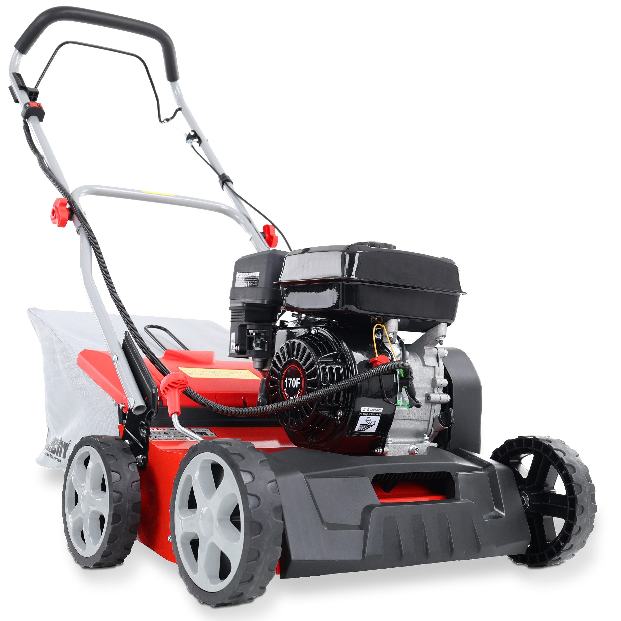 Ausstattung | Lüfterwalze Vertikutierwalze 50 l Grasfangkorb 3,6 l Kraftstofftank Praktischer Frontgriff Kugelgelagerte Räder Ergonomischer Führungsholm |