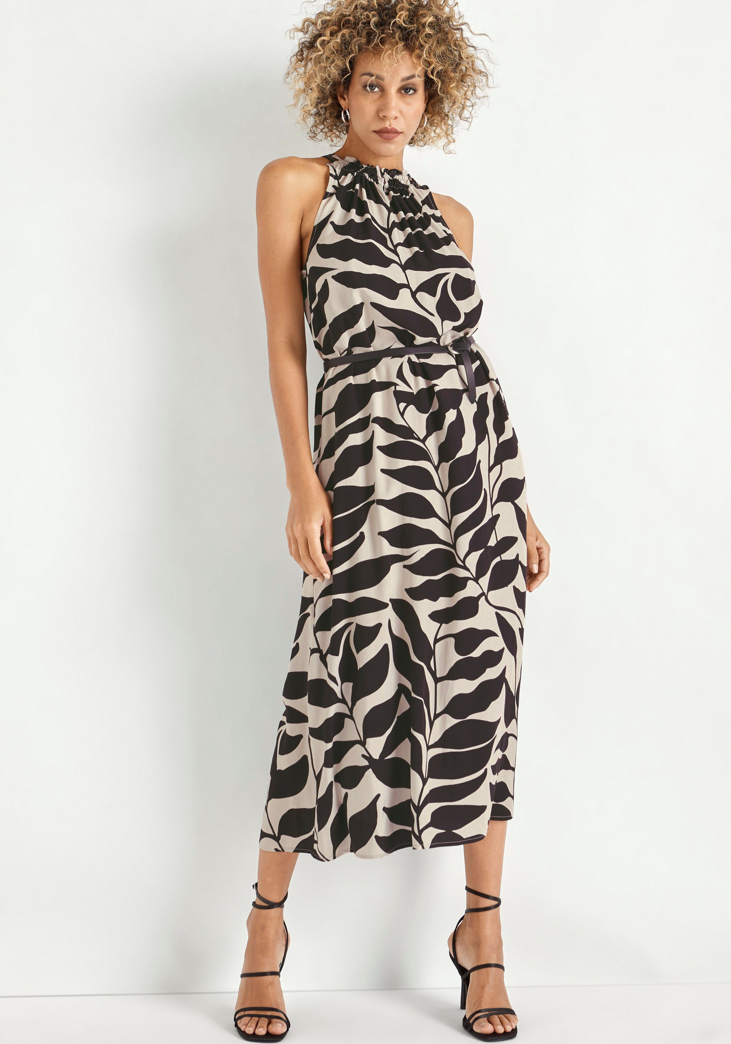 Der luftige Webstoff fühlt sich auch nach einem langen Tag noch leicht auf der Haut an. Dazu kommen die praktischen und funktionalen Eigenschaften: Das Midikleid ist atmungsaktiv.