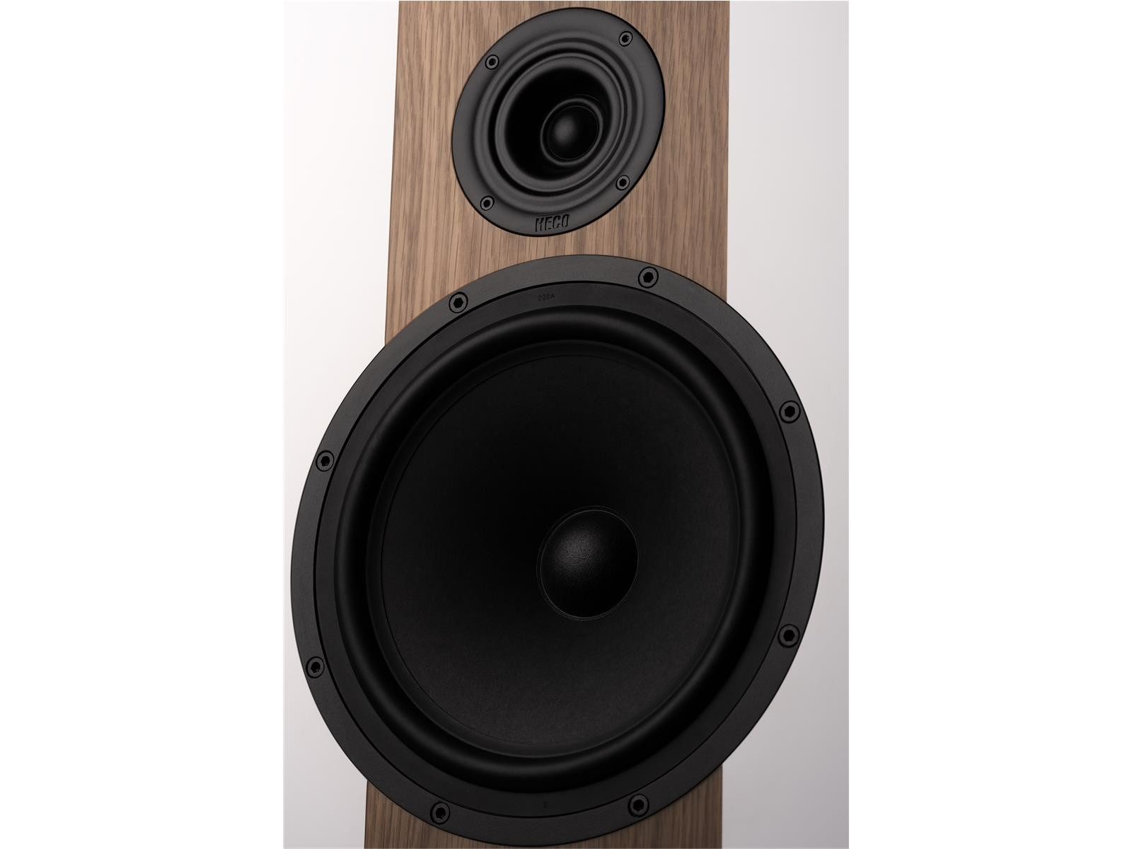 Der Hochtöner mit einer 28 mm Silk-Compound-Kalotte verfügt über eine Vollaluminium-Frontplatte mit innovativer Fluktus Wave-Control-Horngeometrie und einem leistungsstarken Doppelmagnetsystem. Der 275 mm große Tieftmitteltöner ist mit einer Kraftpapiermembran, einer leichten Gewebe-Staubschutzkalotte, einer verlustarmen Gummisicke und einer hochbelastbaren Schwingspule ausgestattet, die im stabilen Aludruckgusskorb montiert ist. Die elegante Beschichtung des Hochtonflansches und des Tiefton-Befestigungsrings in Schwarz Seidenglanz-Finish rundet das edle Design ab.