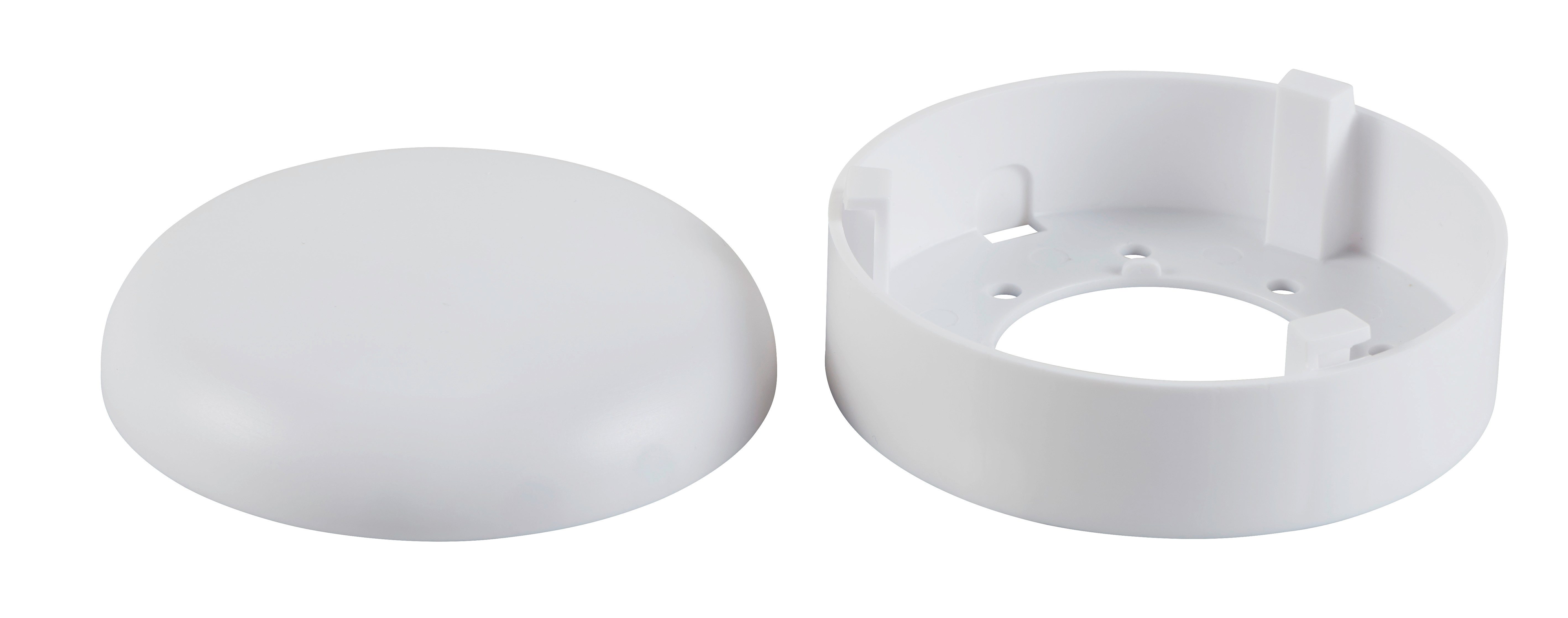 Mit Adapterring & Ausbrechöffnungen – Für Aufputzmontage oder auf Geräte-/Abzweigdosen Ø60/70 mm geeignet, mit 3/5 Ausbrüchen für Kabeldurchführungen.