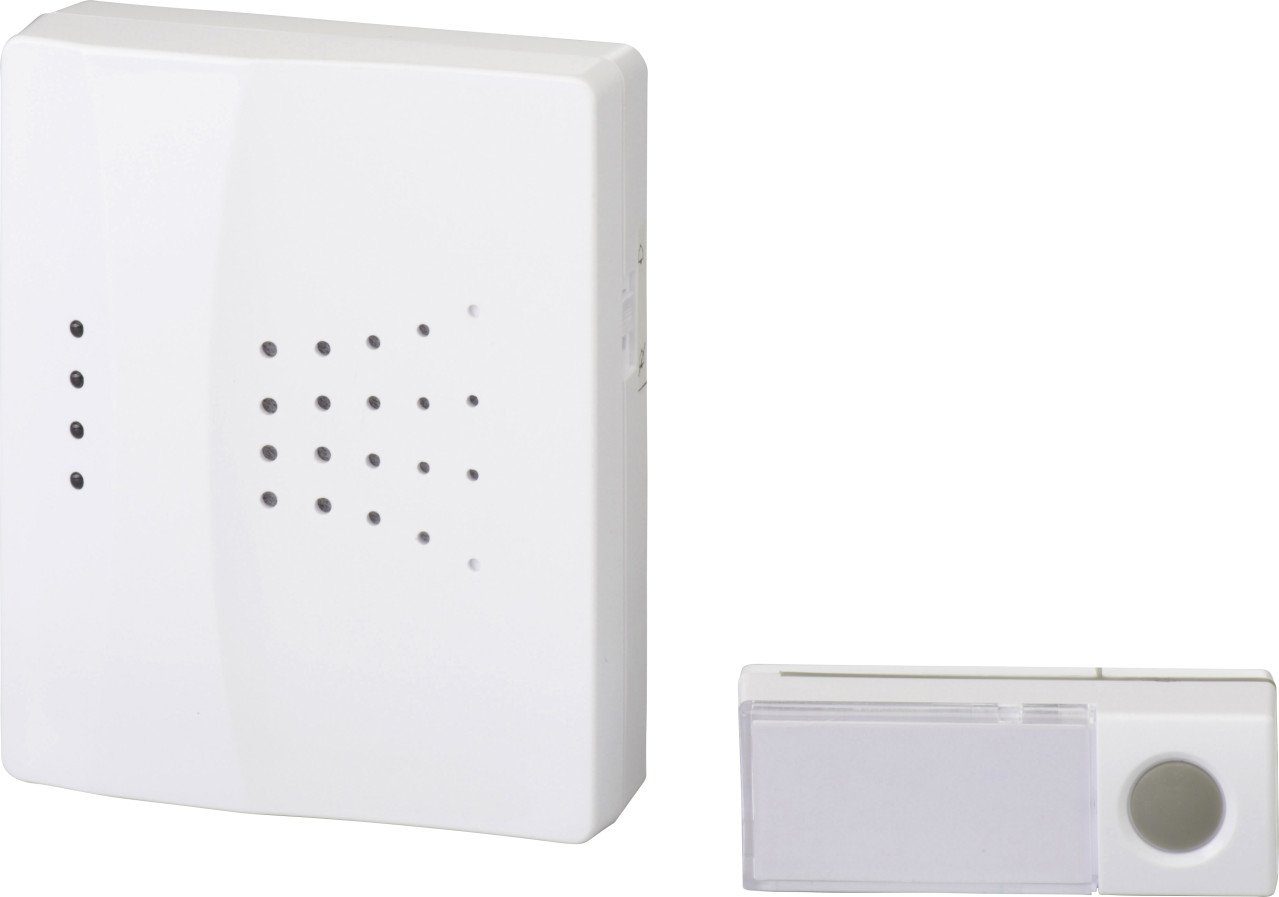 Funkgong Set | reinweiß | für Aufputzmontage | rote LED als Warnleuchte bei schwachen Batterien im Empfänger | Empfänger Maße: 115 x 115 x 30 mm (HxBxT) / Sender 29 x 81 x 18 mm | inkl. 1 x 3 Volt CR2032 Batterie | 8 Melodien einstellbar (Rufunterscheidung) | Lautstärke ca. 70 bis 90 dB(A) | 256 Funkfrequenzen selbstlernend einstellbar | strahlwassergeschützter Sender IP55 mit Namensschild und LED Funktionsleuchte | kompatibel/erweiterbar mit allen HX-Geräten | Reichweite ca. 150 m (im freien Feld) | Empfänger reinweiß/Front Hochglanz, Sender reinweiß | Ein-Aus-Schalter | optisches Rufsignal (3 blaue LED) |