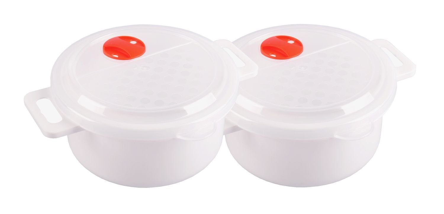 Praktischer Topf mit Deckel und Ventil zum Aufwärmen von Speisen in der Mikrowelle. Die Kasserolle ist aus einem mikrowellengeeignetem Kunststoff hergestellt und für Temperaturen von -40°C bis +120°C geeignet.