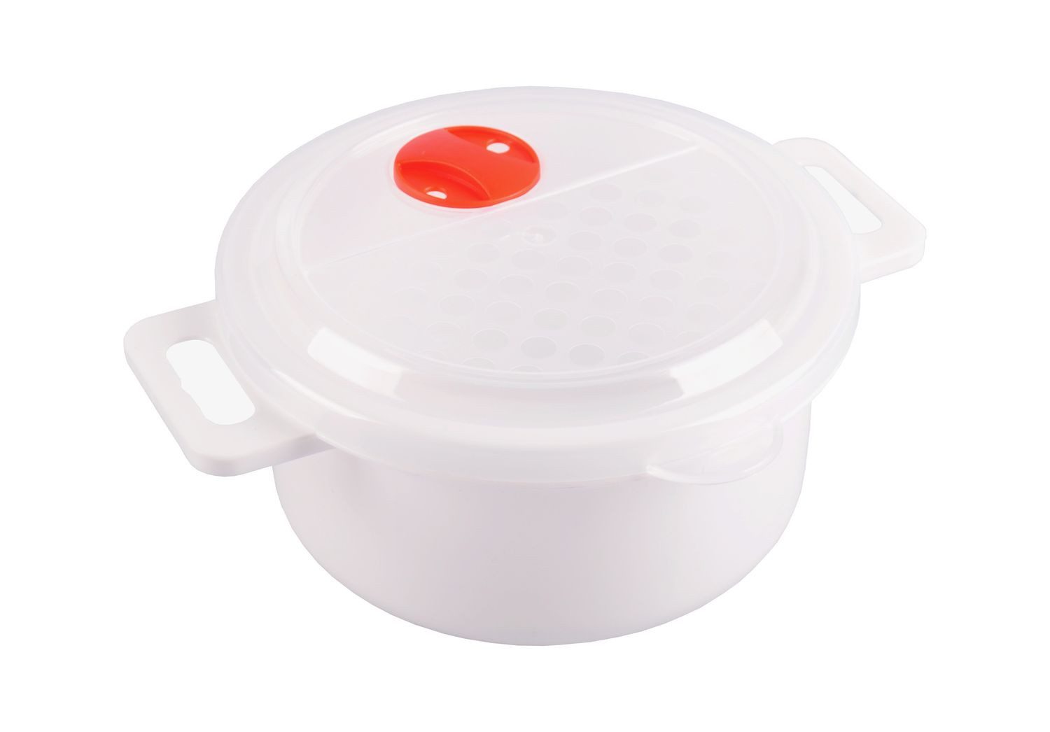 Praktischer Topf mit Deckel und Ventil zum Aufwärmen von Speisen in der Mikrowelle. Die Kasserolle ist aus einem mikrowellengeeignetem Kunststoff hergestellt und für Temperaturen von -40°C bis +120°C geeignet.