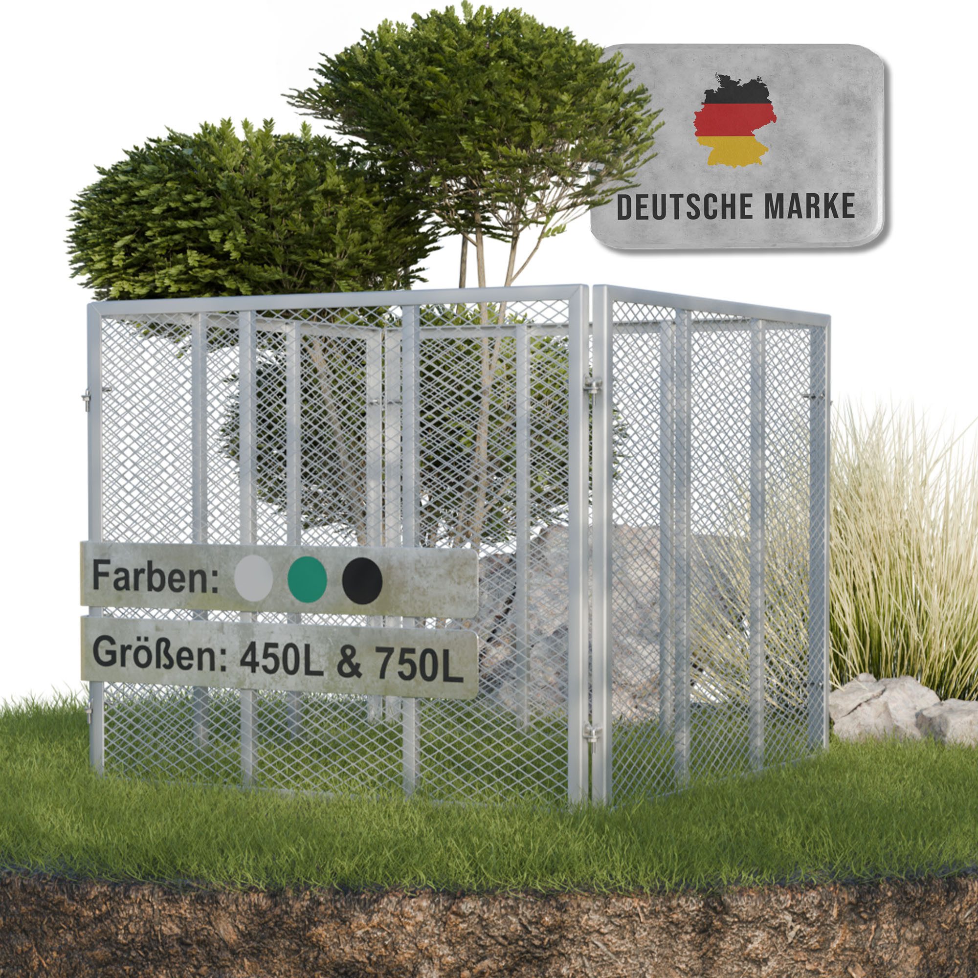Der Heimfleiss® Metall Komposter ist die ideale Lösung für eine nachhaltige und effiziente Kompostierung in Ihrem Garten. Mit einer Kapazität von 450L oder 750L bietet dieser robuste Komposter ausreichend Platz für Garten- und Küchenabfälle und verwandelt diese in wertvollen, nährstoffreichen Kompost.