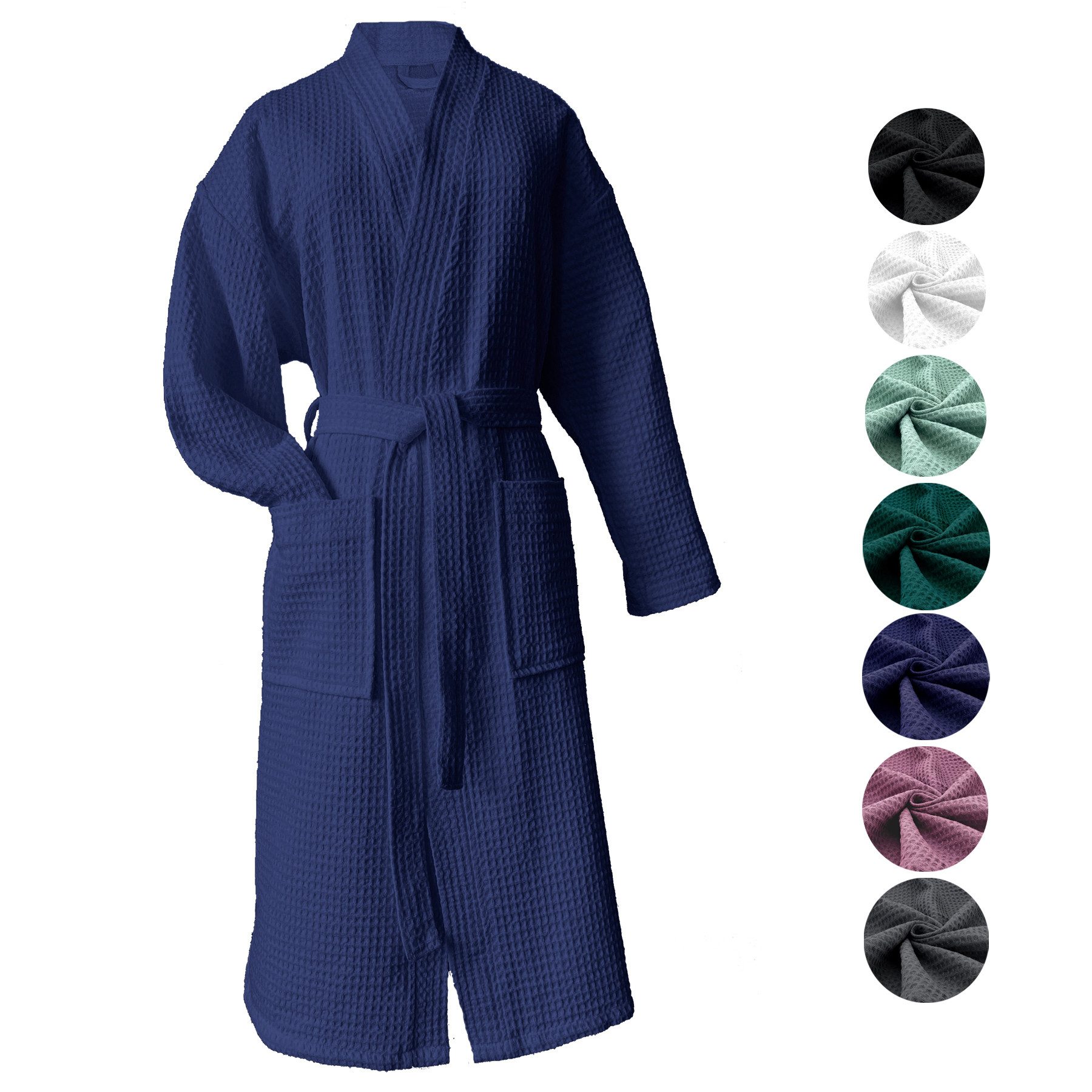 Die Farbe ist nicht leuchtend blau, sondern ein mattes Blau. Nur grob gewebt und etwas zu eng für ein XXL. Ich habe mir einen anderen Bademantel bestellt.