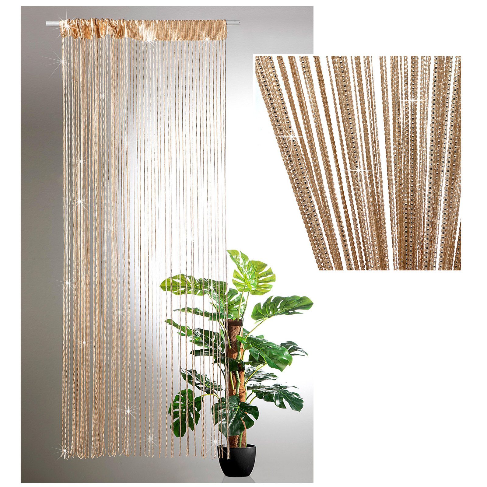 1 Fadenstore in Gold mit Lurex Garn veredelt I zusätzlich eingewirkte, funkelnde Silber-Fäden sorgen für noch mehr Glitzer I HxB 250 x 90 cm I auf jede beliebige Höhe kürzbar und in Form schneidbar - franst nicht aus I mit breitem Tunnelzug ( 10 cm ) für alle Gardinenstangen geeignet I Material: 100% Polyester - Pflegeleicht waschbar bei 30° I geprüfte Qualität - frei von Schadstoffen I Anwendungsbeispiele: Türvorhang I Raumteiler I Insektenschutz I Fensterdekoration I Deko für Weihnachten Silvester Party Hochzeit Firmen Jubiläum Gala Fasching I Schaufenster Dekoration