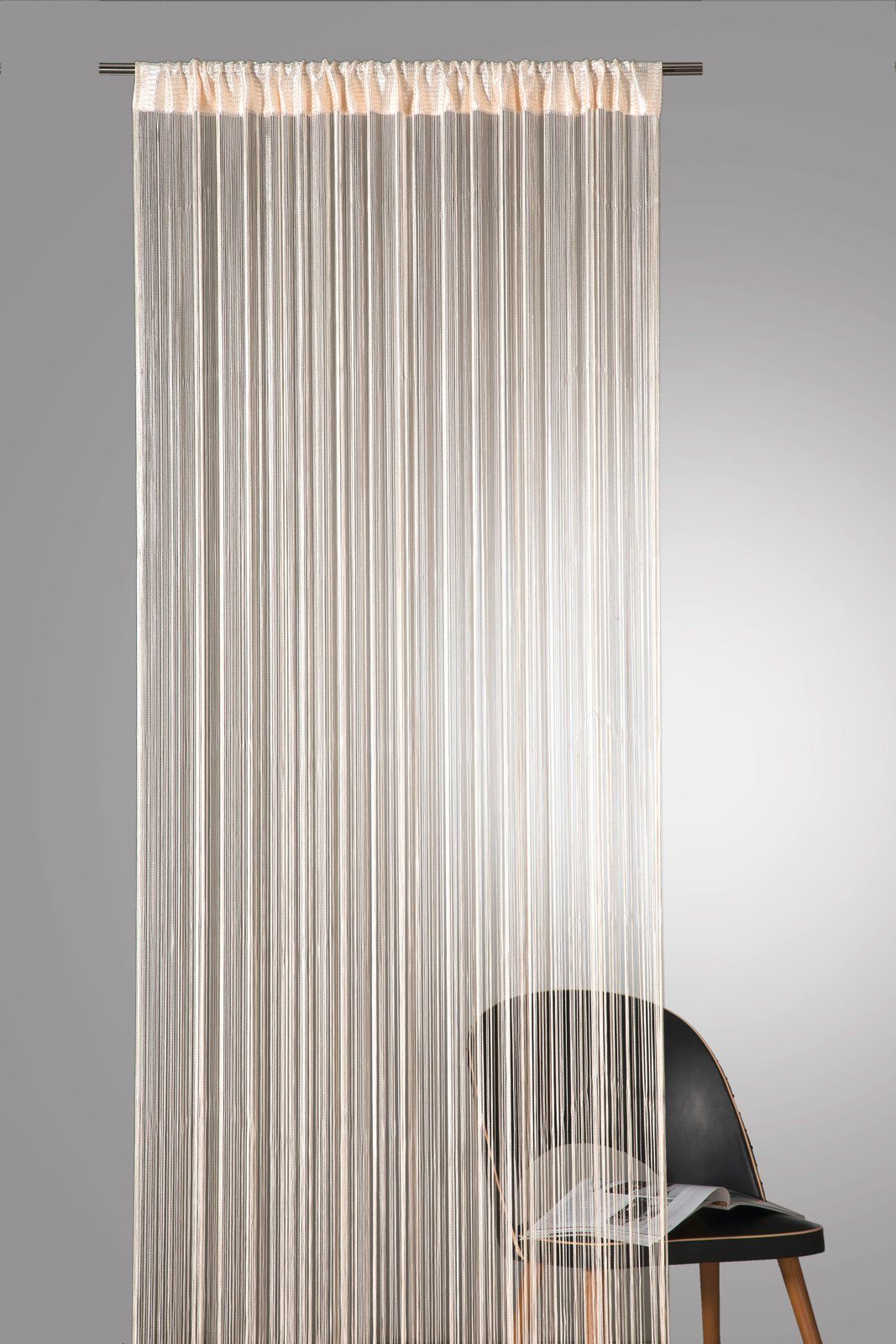 Hinweis Kürzung | besondere Wirktechnik - Fäden können abgeschnitten werden ohne Auszufransen - auf Wunschhöhe kürzbar - in Form schneidbar z.B. für Schrägfenster |
