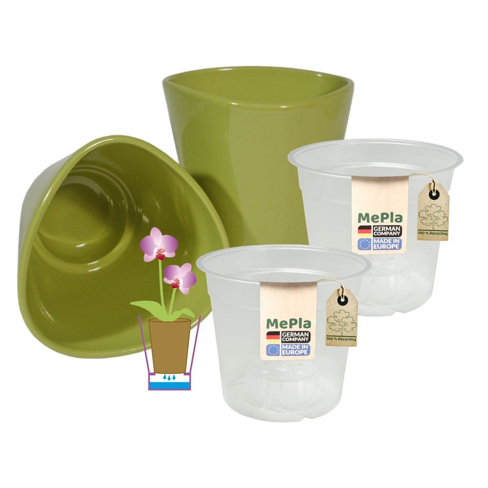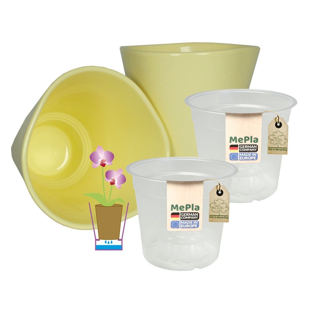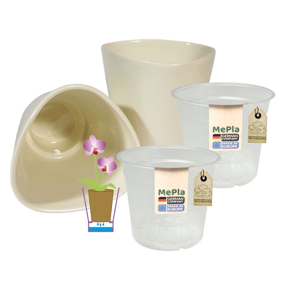 2-teiliges Komplett-Set: Enthält zwei edle Keramik-Übertöpfe sowie zwei durchsichtige Pflanztöpfe – passend für gängige Orchideenarten.