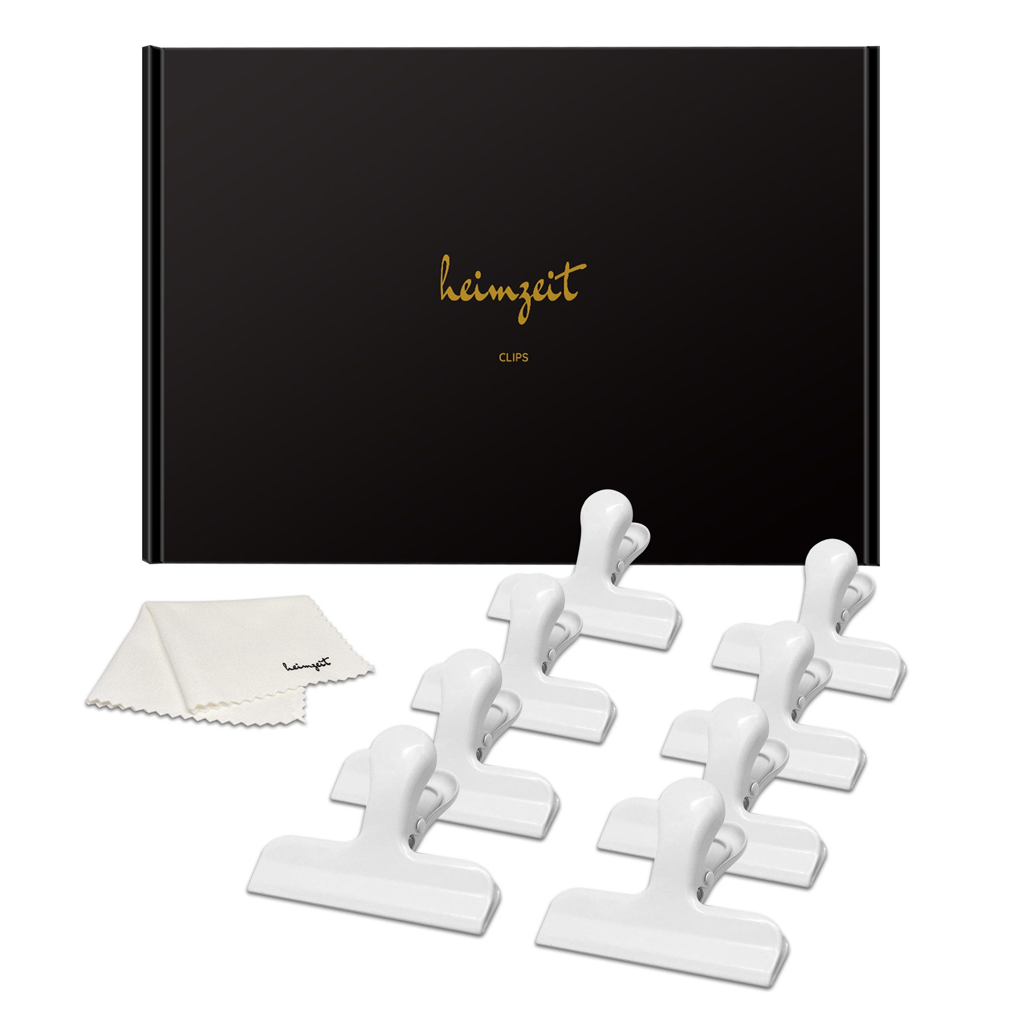 Nützliche Informationen: Mit einem Gewicht von 34g sind die Klammern von heimzeit schwerer als herkömmliche Clips und bieten dadurch eine besonders robuste und langlebige Handhabung. Der feine Wellenschliff des Edelstahls sorgt für eine hohe Widerstandsfähigkeit im Gebrauch und garantiert somit eine lange Lebensdauer
