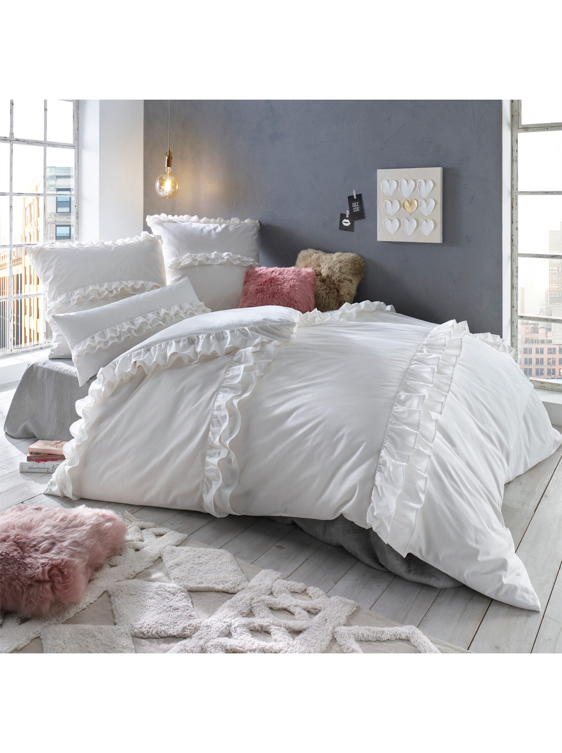 Bettwäsche Glatte, feinfädige Renforcé-Qualität. Rundum mit Rüschensaum. Все Teile mit Reißverschluss.