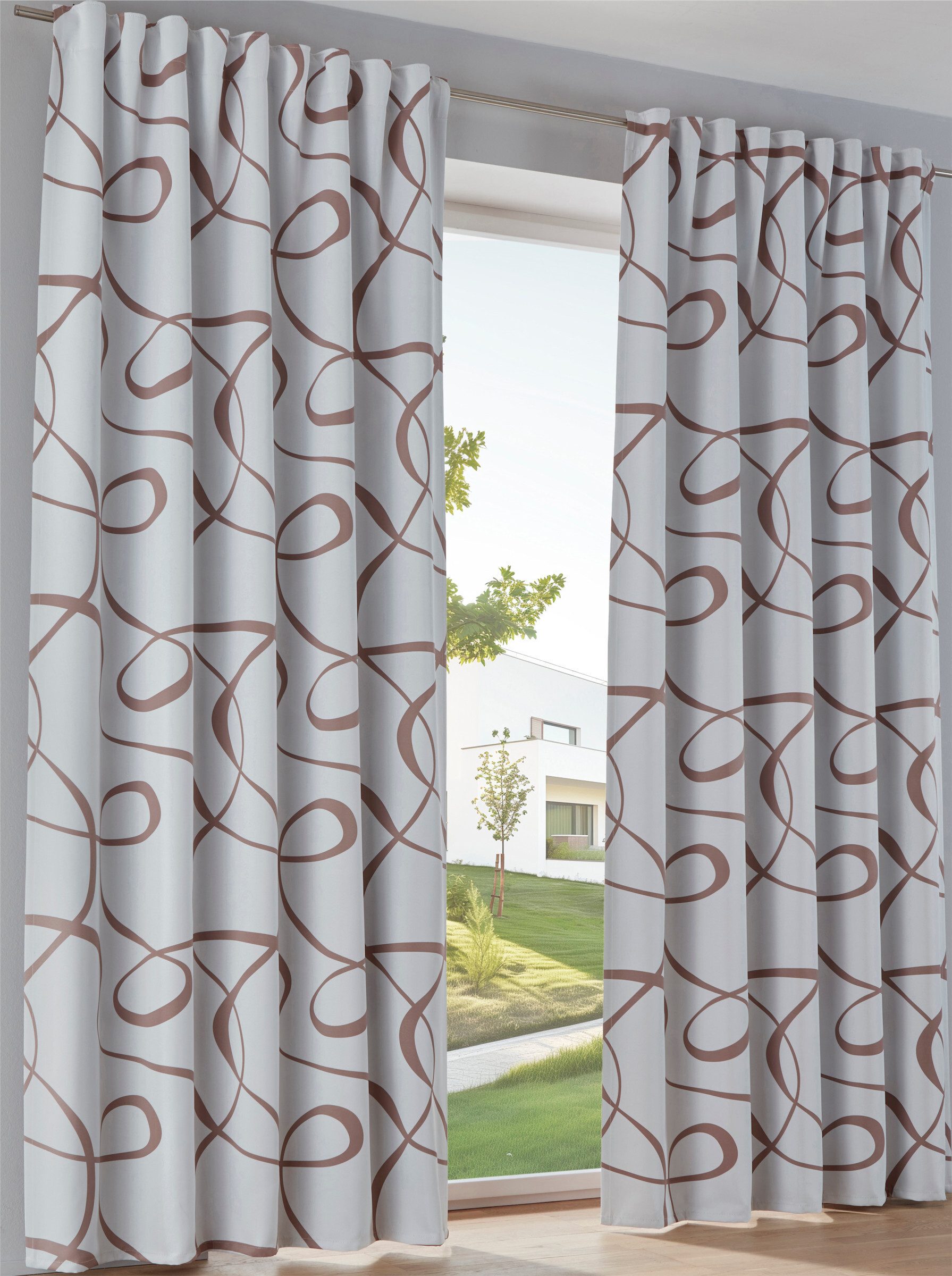 Verdunklungsschal Optimaler Lichtschutz in schwerer Qualität. Vorderseite mit Grafik-Dessin, Rückseite uni Weiß.