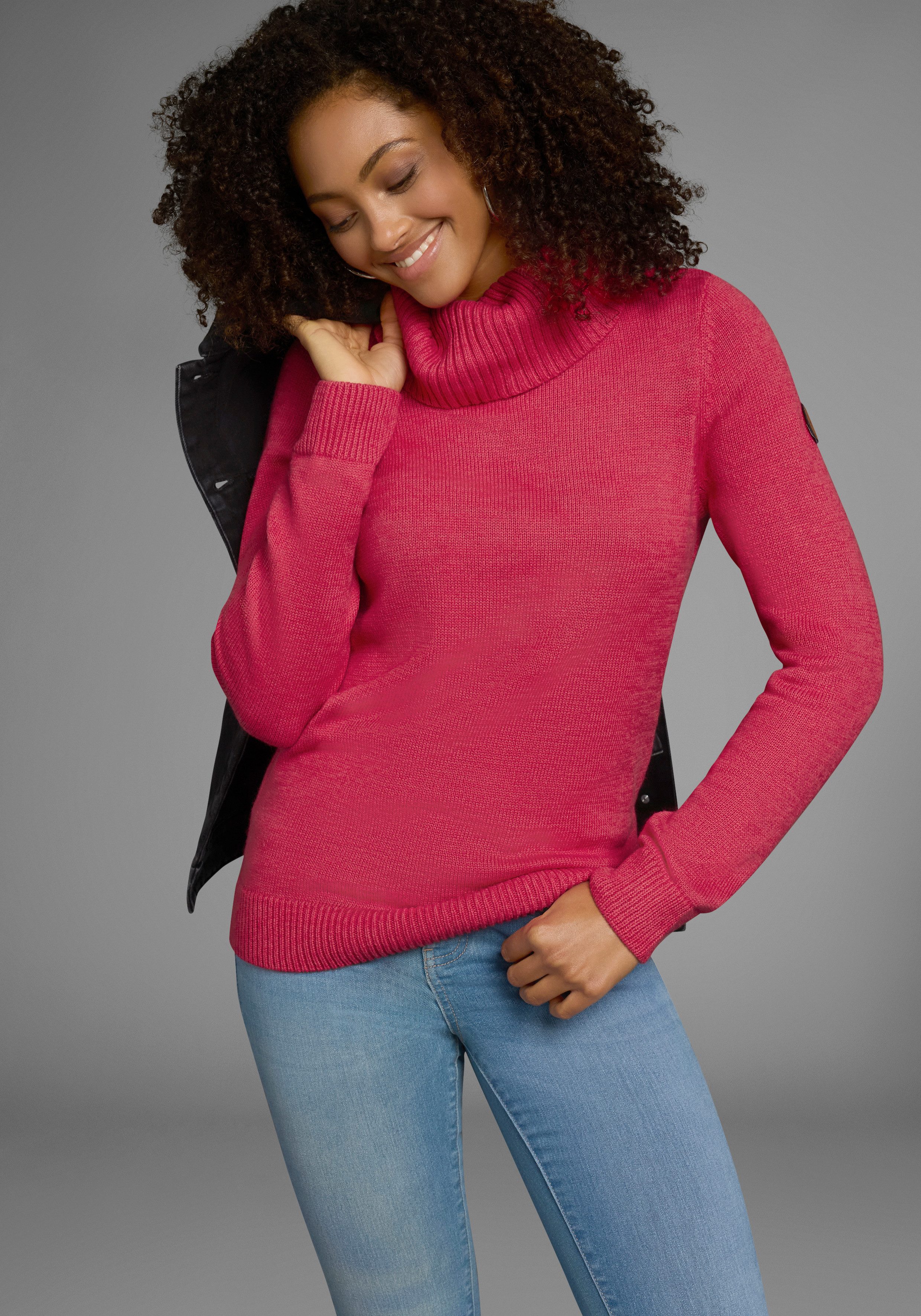 Schau dir den Rollkragenpullover von KangaROOS mal genauer an. Der Rollkragen ist schlauchartig und wird am Hals umgeschlagen, so schützt er deinen Nacken vor Zugluft und sieht gleichzeitig edel aus. Die langen Ärmel enden in einem Rippbündchen, das für guten Sitz sorgt. Dieser Pullover ist hüftbedeckend sowie figurbetont geschnitten, sodass er deinen Oberkörper schön zur Geltung bringt.