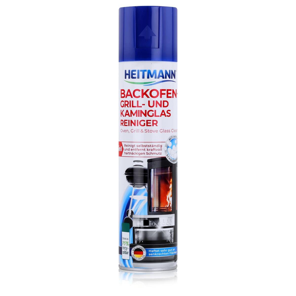Besonders einfache Anwendung: Heitmann Backofen-Grill und KaminglasreinigerDer Heitmann Backofen- und Grillreiniger beseitigt insbesondere Fett- und Schmutzrückstände. Das Spray hält auch an senkrechten Flächen, sodass nichts verläuft und das Reinigungsmittel gut einwirken kann. Schütteln Sie die Dose zunächst und halten Sie diese bei der Anwendung möglichst senkrecht. Sprühen Sie den Reiniger dann aus einem Abstand von rund 15 cm auf die verschmutzte Fläche. Lassen Sie den Heitmann Backofen- und Grillreiniger nun mindestens eine Stunde lang einwirken und wischen Sie die Fläche danach feucht ab. Wenn die Verschmutzungen sehr stark sind, empfehlen wir Ihnen, die Fläche erneut einzusprühen und den Heitmann Backofen- und Grillreiniger über Nacht einwirken zu lassen. So kann er seine Wirkung optimal entfalten, weshalb Sie die Rückstände anschließend leicht entfernen können.