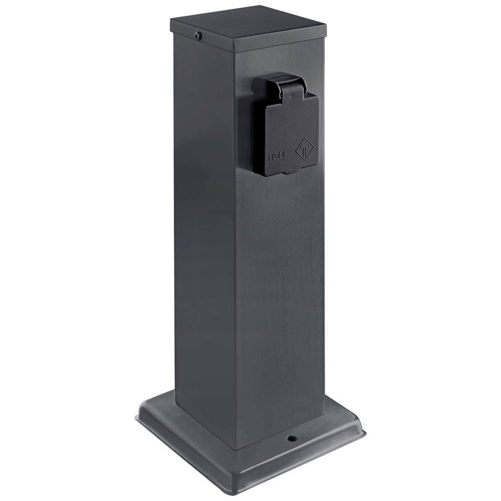 Eigenschaften | 2021 Energieeffizienzklasse: n.rel · Anschluss-Leistung max.: 3680 W · Betriebsspannung: 230 V · Einsatzort: Außenbereich · Herstellerfarbe: Anthrazit · Material: Edelstahl · Produktabmessung, Breite: 127 mm · Produktabmessung, Höhe: 265 mm · Produktabmessung, Длина: 127 mm · Steckdosen-Anzahl: 2 · Steckdosenleisten-Besonderheiten: erhöhter Berührungsschutz |