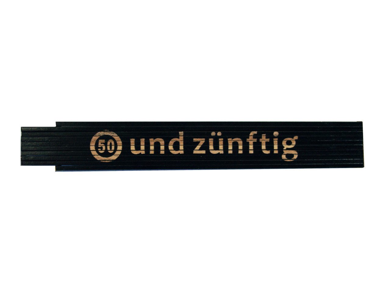 Produktdetails: Aufdruck: "50 und zünftig" | Длина: 2 m | Breite: 17 mm | 10 Glieder à 3 mm Stärke | Genauigkeitsklasse 3 | Maßeinteilung:Zentimeter, zweiseitig | Material: Buchenholz | Beschriftung: gelasert | Farbe: schwarz | Gewicht: 107 g |
