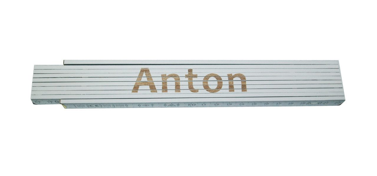 Produktdetails: Aufdruck: Anton | Длина: 2 m | Breite: 17 mm | 10 Glieder à 3 mm Stärke | Genauigkeitsklasse 3 | Maßeinteilung: Zentimeter, Zweiseitig | Material: Buchenholz | Beschriftung: gelasert | Farbe: weiß | Gewicht: 107 g |