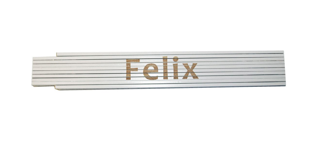 Produktdetails: Aufdruck: Felix | Длина: 2 m | Breite: 17 mm | 10 Glieder à 3 mm Stärke | Genauigkeitsklasse 3 | Maßeinteilung: Zentimeter, Zweiseitig | Material: Buchenholz | Beschriftung: gelasert | Farbe: weiß | Gewicht: 107 g |