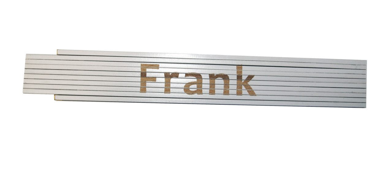 Produktdetails: Aufdruck: Frank | Длина: 2 m | Breite: 17 mm | 10 Glieder à 3 mm Stärke | Genauigkeitsklasse 3 | Maßeinteilung:Zentimeter, zweiseitig | Material: Buchenholz | Beschriftung: gelasert | Farbe: weiß | Gewicht: 107 g |