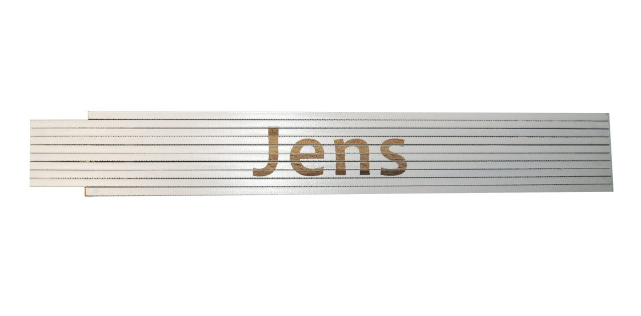 Produktdetails: Aufdruck: Jens | Длина: 2 m | Breite: 17 mm | 10 Glieder à 3 mm Stärke | Genauigkeitsklasse 3 | Maßeinteilung: Zentimeter, Zweiseitig | Material: Buchenholz | Beschriftung: gelasert | Farbe: weiß | Gewicht: 107 g |