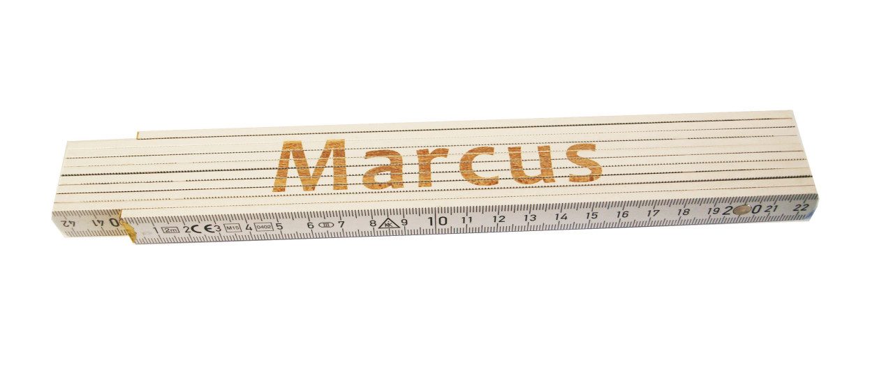 Produktdetails: Aufdruck: Marcus | Длина: 2 m | Breite: 17 mm | 10 Glieder à 3 mm Stärke | Genauigkeitsklasse 3 | Maßeinteilung: Zentimeter, Zweiseitig | Material: Buchenholz | Beschriftung: gelasert | Farbe: weiß | Gewicht: 107 g |