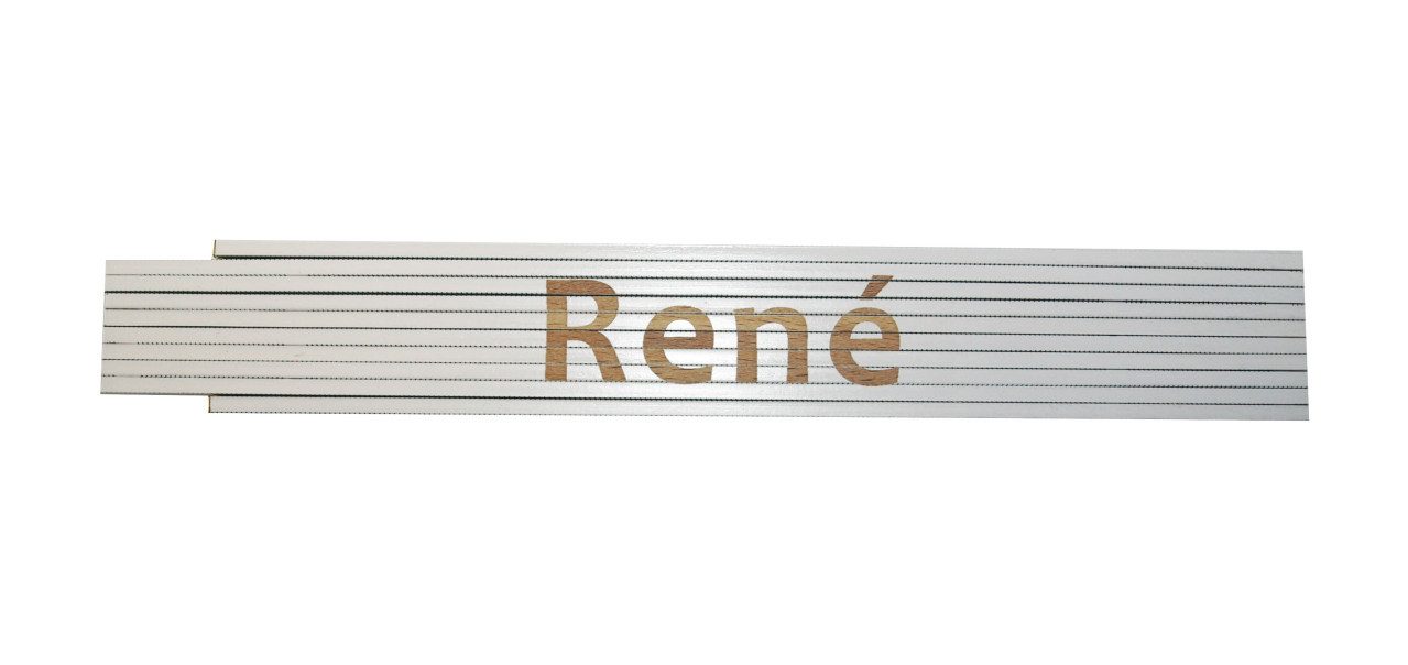 Produktdetails: Aufdruck: Rene | Длина: 2 m | Breite: 17 mm | 10 Glieder à 3 mm Stärke | Genauigkeitsklasse 3 | Maßeinteilung: Zentimeter, Zweiseitig | Material: Buchenholz | Beschriftung: gelasert | Farbe: weiß | Gewicht: 107 g |