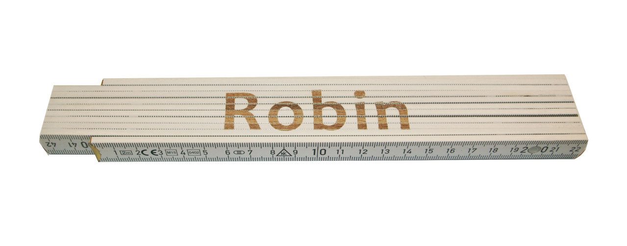 Produktdetails: Aufdruck: Robin | Длина: 2 m | Breite: 17 mm | 10 Glieder à 3 mm Stärke | Genauigkeitsklasse 3 | Maßeinteilung: Zentimeter, Zweiseitig | Material: Buchenholz | Beschriftung: gelasert | Farbe: weiß | Gewicht: 107 g |
