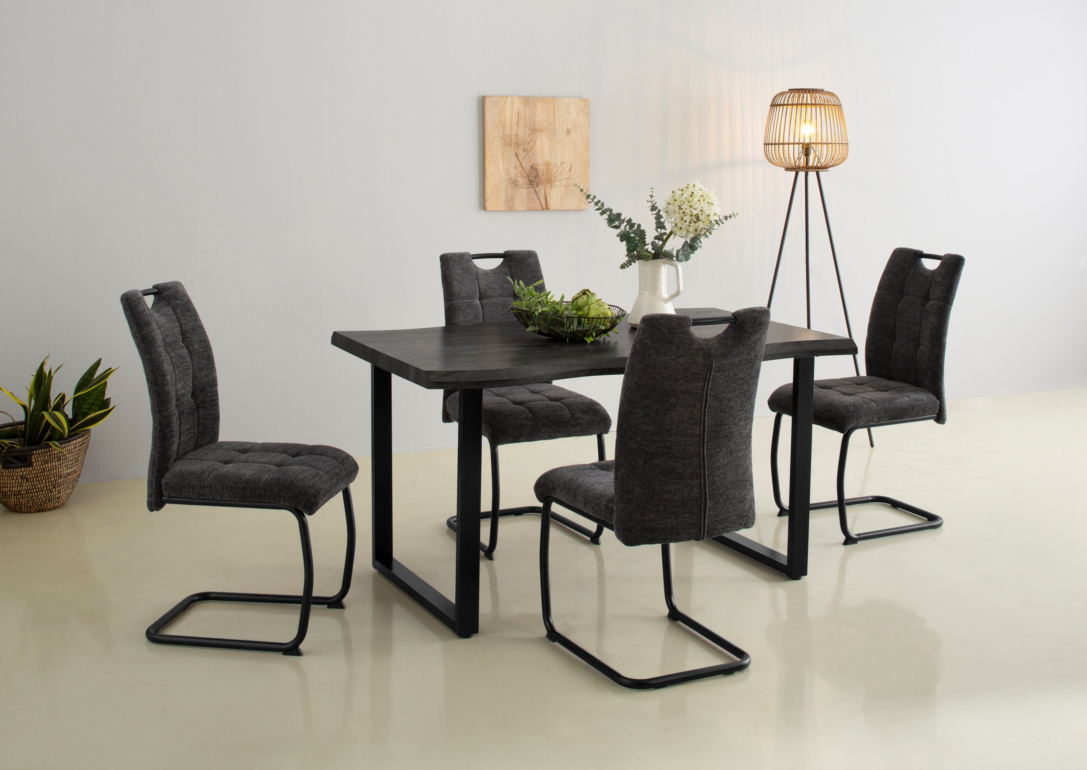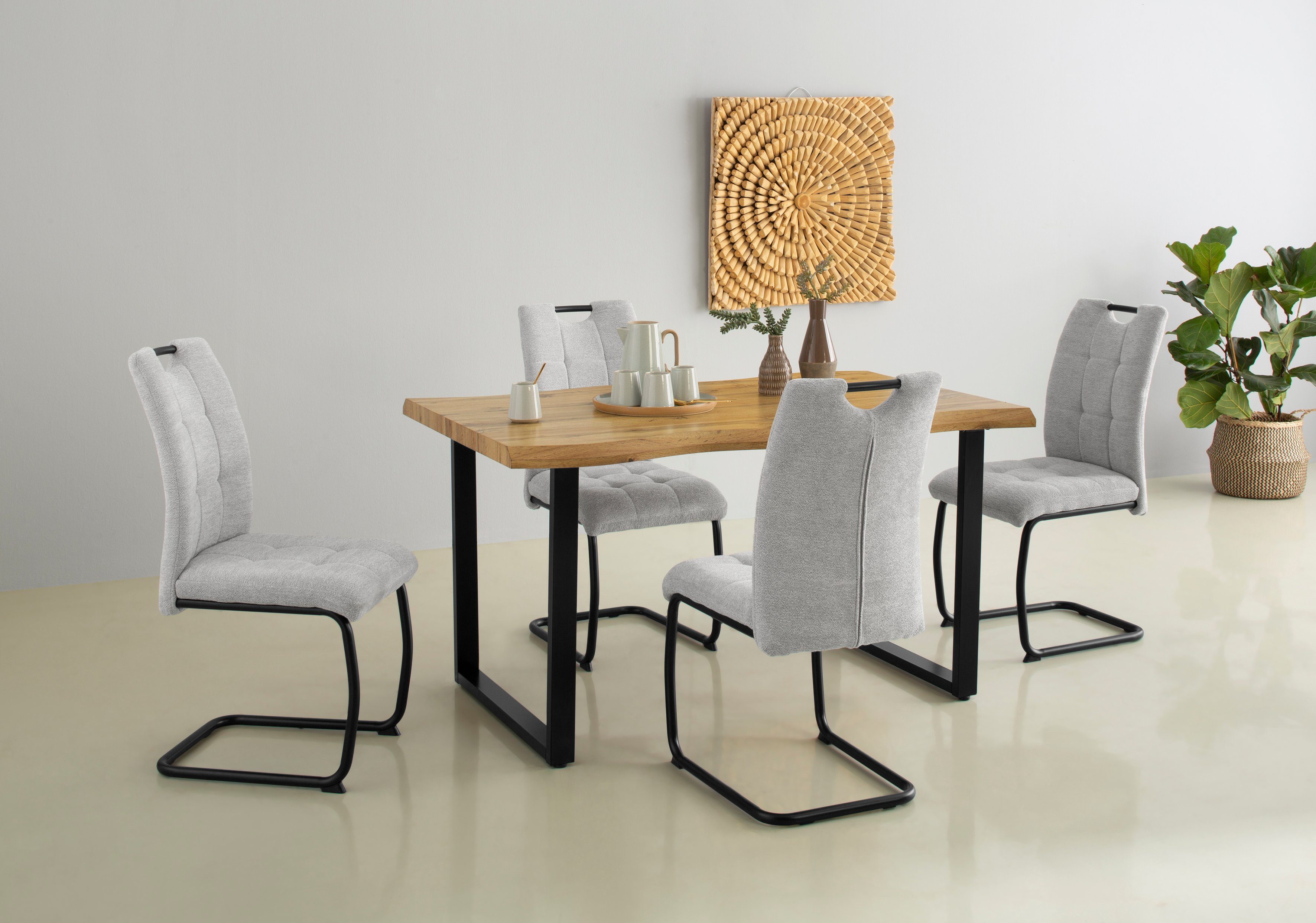 Ob Tea-Time für dich allein oder Kaffeekränzchen: An diesem Esstisch »GISELLE Baumkantentisch, Küchentisch, TOPSELLER! OTTOs Choice« von HELA kannst du die kleinen Freuden des Alltags genießen. Neben der Tischplatte in Holzoptik hat er ein Kufengestell, das zwei Beine smart verbindet, und dadurch sehr belastbar ist. Wenn der Tisch mal Flecken abbekommt, kannst du ihn mit einem trockenen Tuch abwischen.