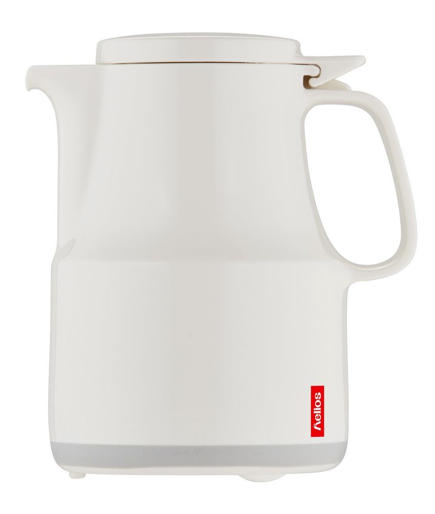 Die spülmaschinenfeste Helios Kunststoff-Isolierkanne Thermoboy sorgt mit ihrem Klappdeckel für eine praktische Einhandbedienung. Egal ob Kaffee oder Tee, heiß oder kalt, im Büro, in Krankenhäusern oder Pflegeheimen oder für zuhause. Im Pflegebereich hat sich das Modell Thermoboy bestens bewährt und ist besonders bei älteren Menschen sehr beliebt. Das doppelwandige Q100 Qualitätsglas, das durch die hochwertige Kunststoff-Umhüllung geschützt wird, hält lange die Temperatur des Getränkes, ob warm oder kalt. Dank der speziellen Santoprene-Versiegelung kann die Isolierkanne auch einfach in der Spülmaschine gereinigt werden. Die Kanne ist in zwei unterschiedlichen Größen (ca. 0,3 Liter für 2,5 Tassen und ca. 0,6 Liter für 5 Tassen) und in vier Farben erhältlich.