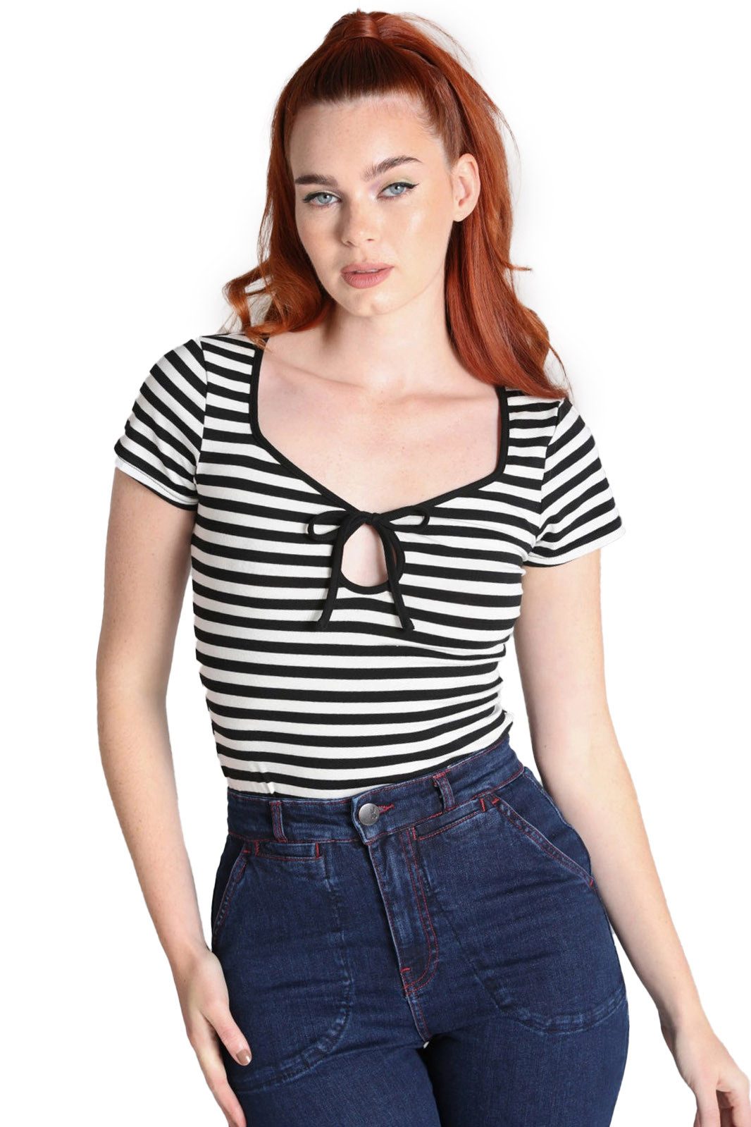 Besondere Merkmale | Retro Vintage Gestreift Schlüsselloch Oberteil |