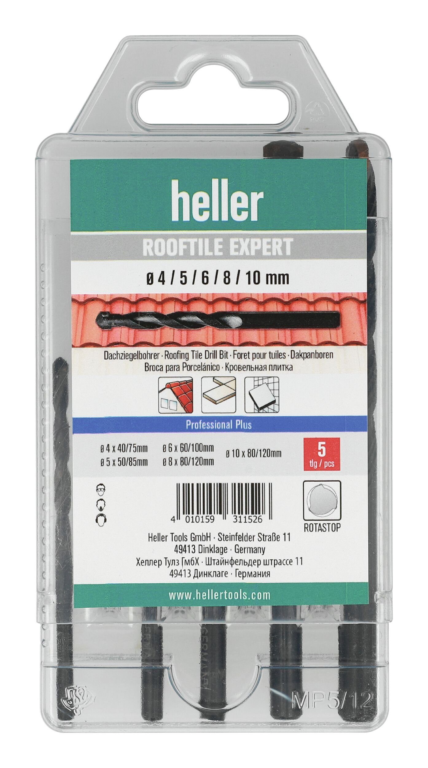 Heller Dachziegelbohrer-Satz Rooftile Expert 5-teilig, 4/5/6/8/10 mm