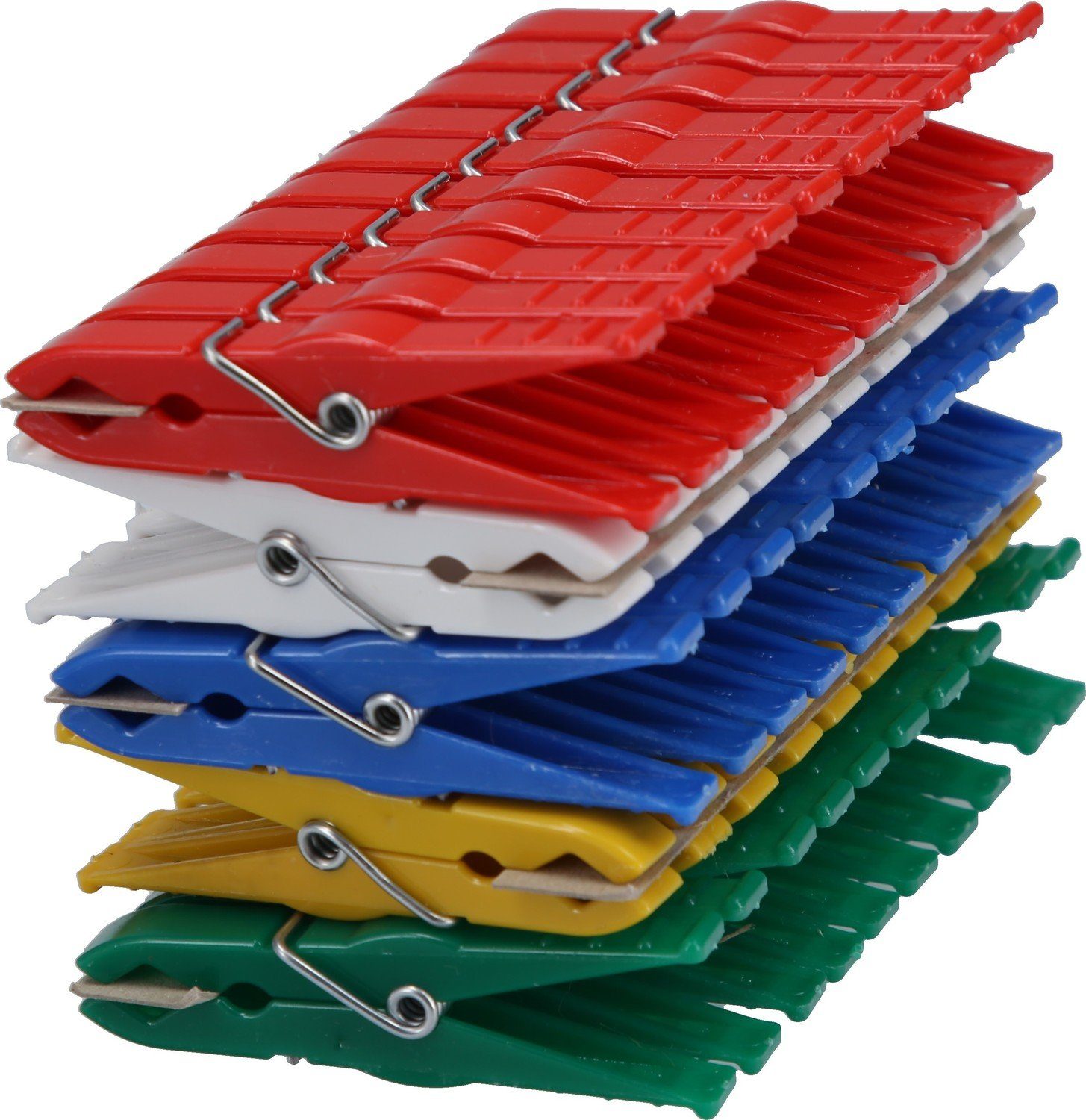 Material: Kunststoff. Farbe: gelb, weiß, blau, rot, grün. Lieferumfang: 10 x Wäscheklammern von jeder Farbe.