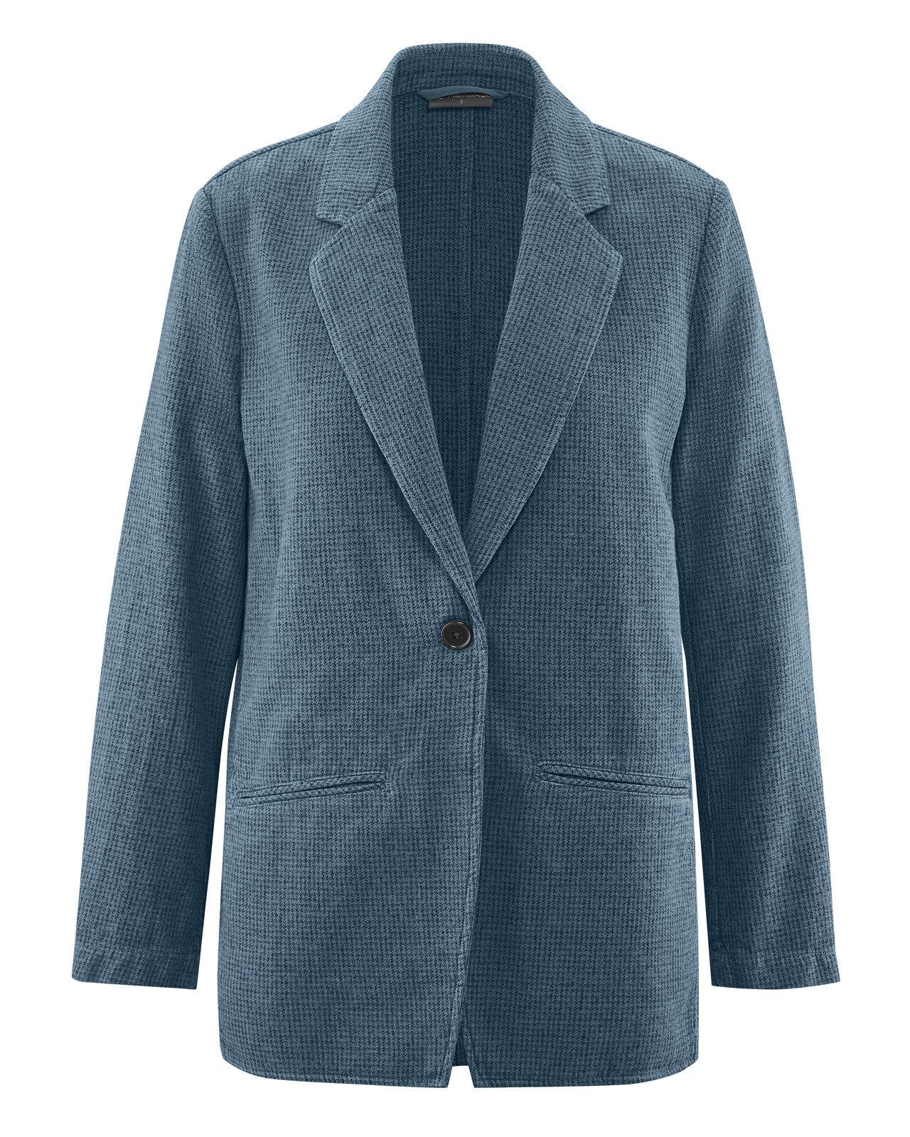 Kantiges Oversize-Design mit klassischem Reverskragen und vorderen Paspeltaschen. Inszeniert in wunderschönen gedeckten Herbstfarben und fair produziert aus einem nachhaltigen Hanf-Bio-Baumwoll-Mix – was will man mehr? Natürlich: die passende Pepita-Hose!