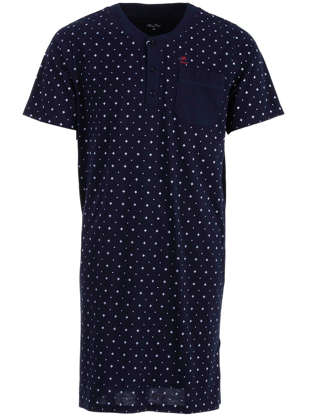 Das kurzarm Herren-Nachthemd ist die perfekte Kombination aus hohem Tragekomfort und einem klassischen Design. Der Alloverprint in blau, anthrazit, navy und grau ist zeitlos klassisch.