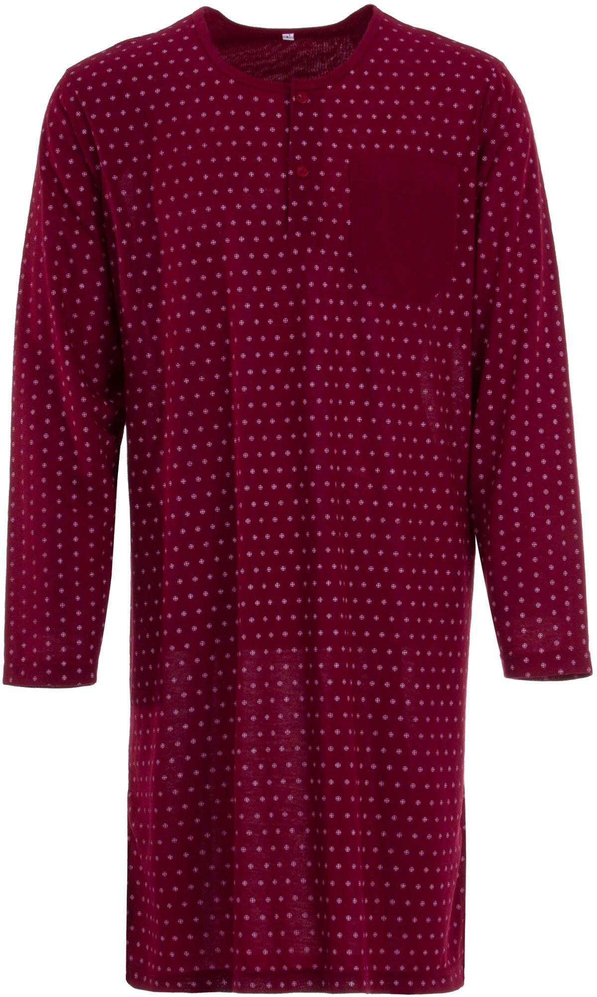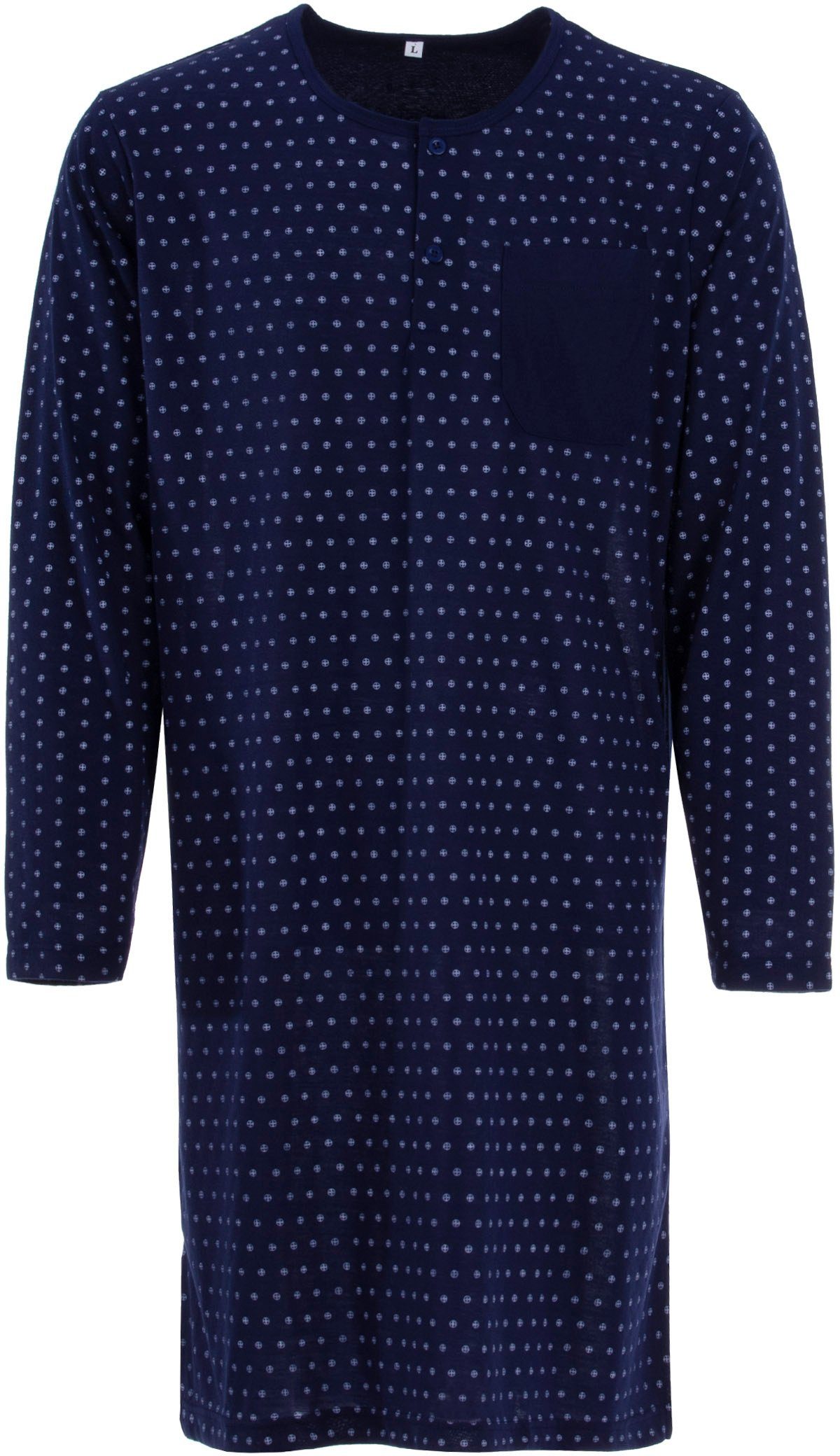 Klassisches Herren Nachthemd in edler Optik mit Musterung. Das Shirt ist angenehm auf der Haut zu tragen. Kleine Brusttasche und zwei Knöpfe.