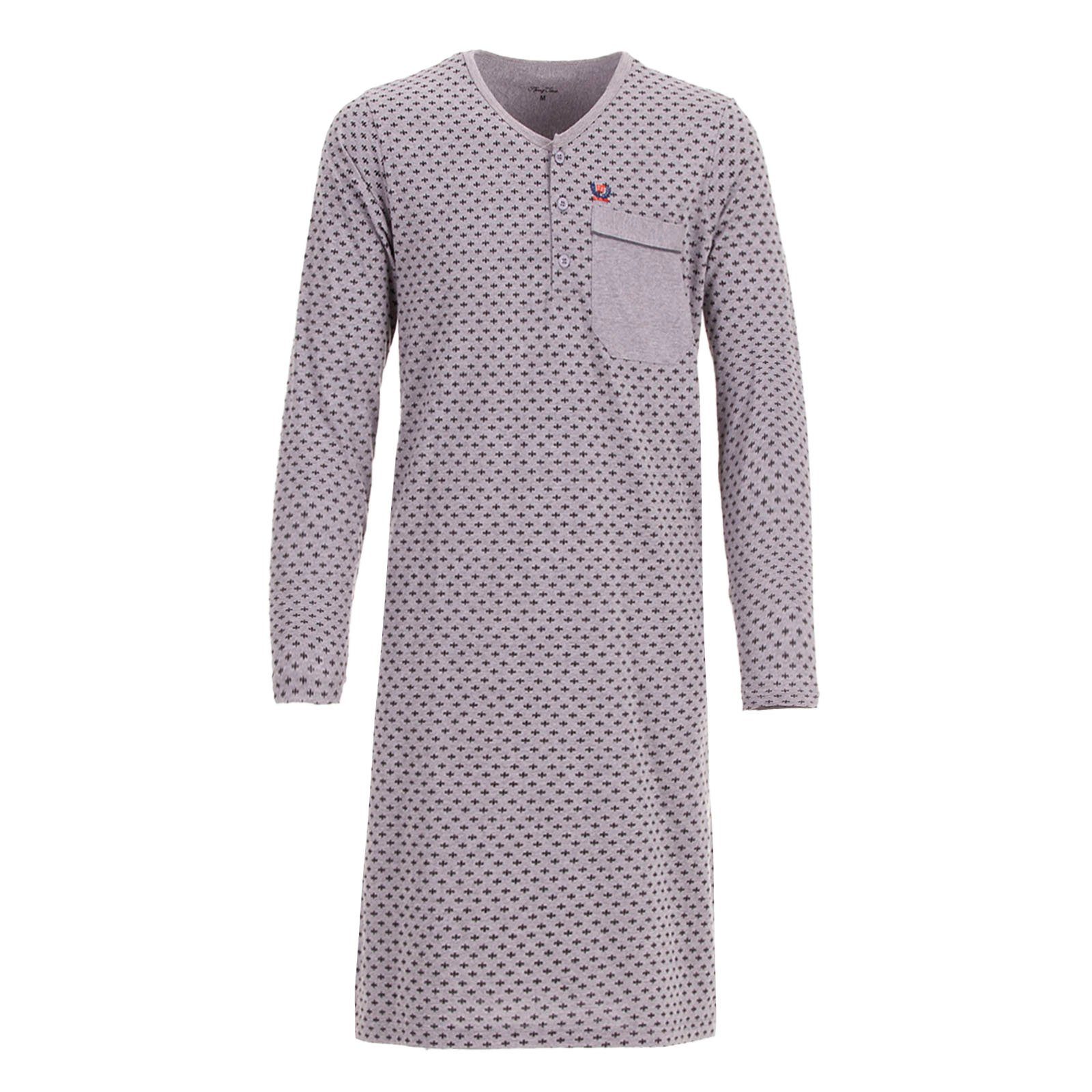Das langärmelige Herren-Nachthemd ist die perfekte Kombination aus hohem Tragekomfort und einem maskulinen Design. Grafische Formen verteilen sich im Alloverprint auf blau, anthrazit und grau und erhalten mit der Brusttasche und V-Ausschnitt ein dezentes Detail. Dieses Herren Schlafshirt ist Dank 87% Baumwollanteil und 13 % Polyesteranteil, wunderbar weich und gleichzeitig formbeständig. Die seitlichen Schlitze machen das Nachthemd besonders bequem. Ideal für Herren, die entspannte Nächte am liebsten in bewährter Henry Terre Qualität genießen.