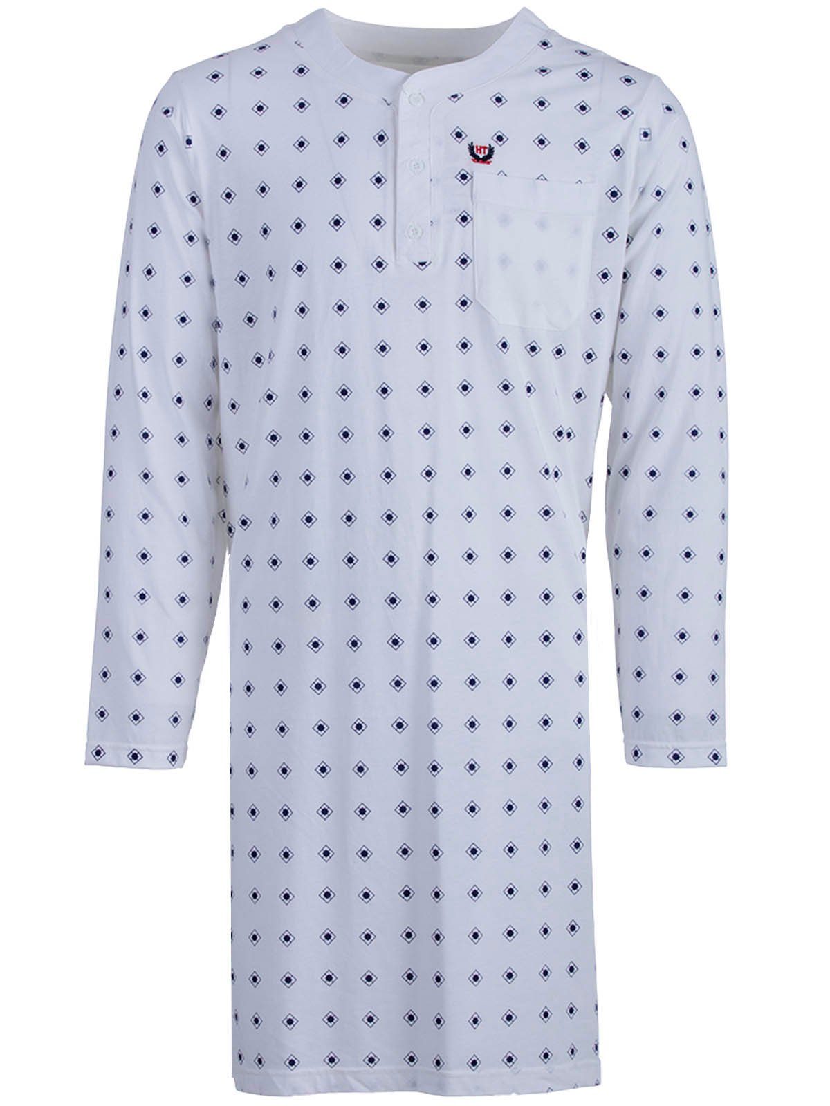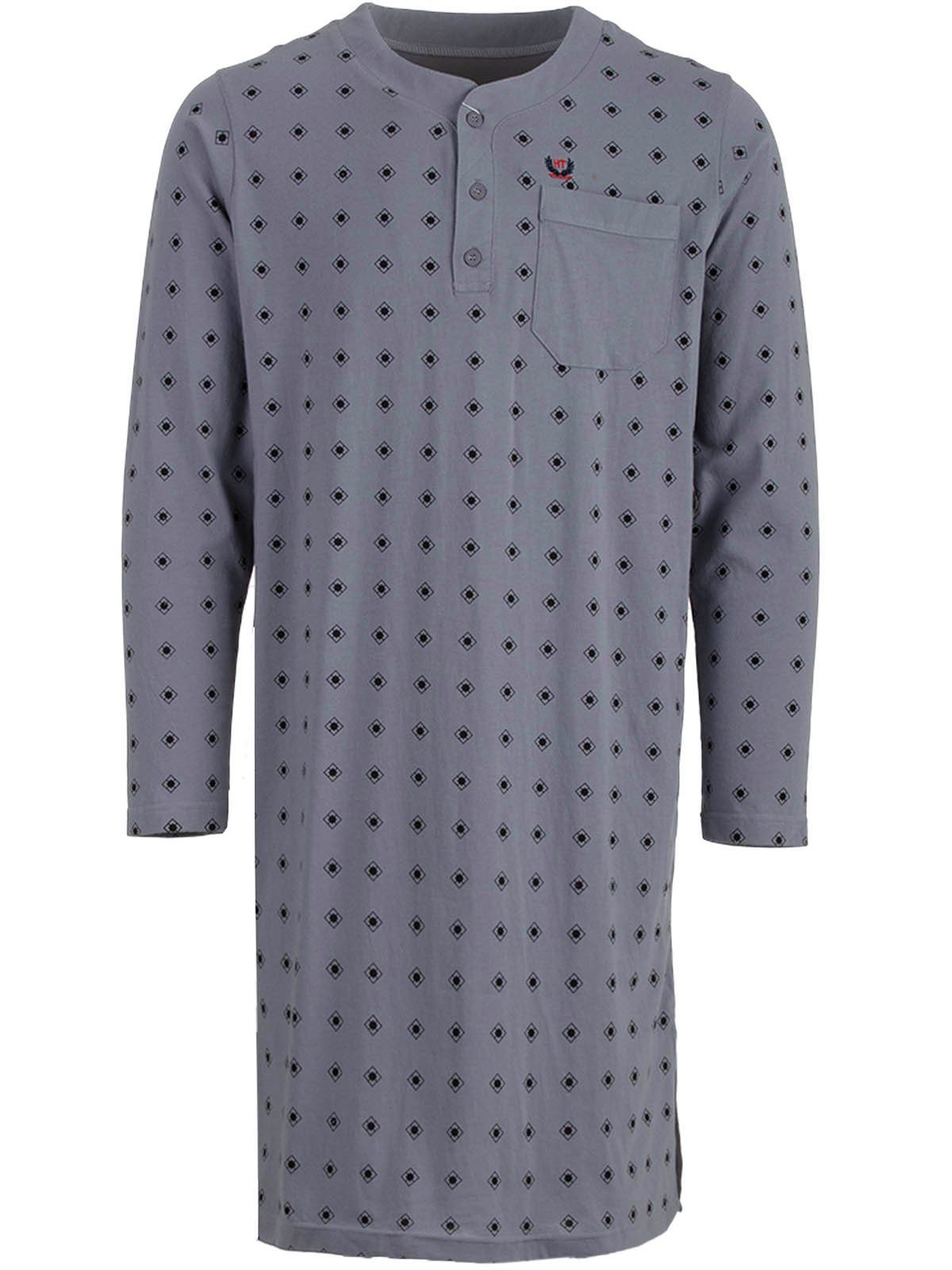 Nachthemd für Herren in klassischer Optik. Das Shirt ist angenehm und leicht auf der Haut zu tragen. Unifarbene Brusttasche.