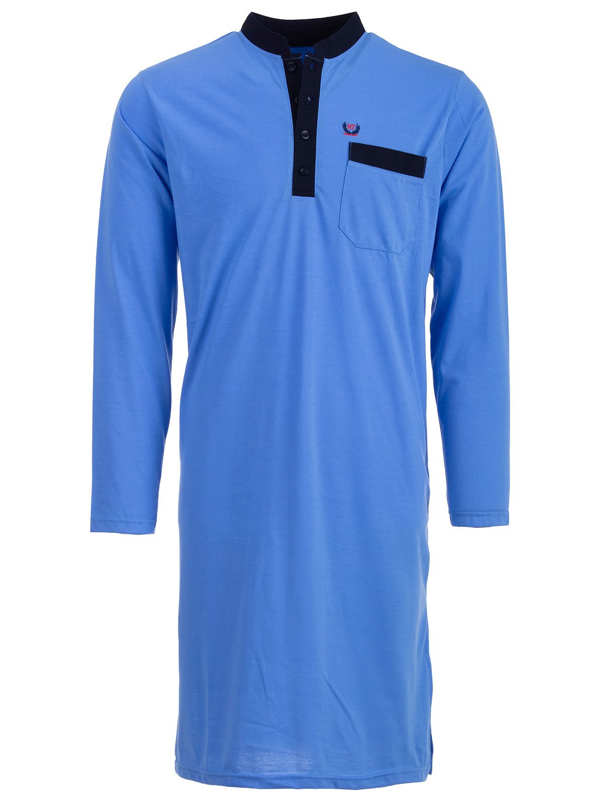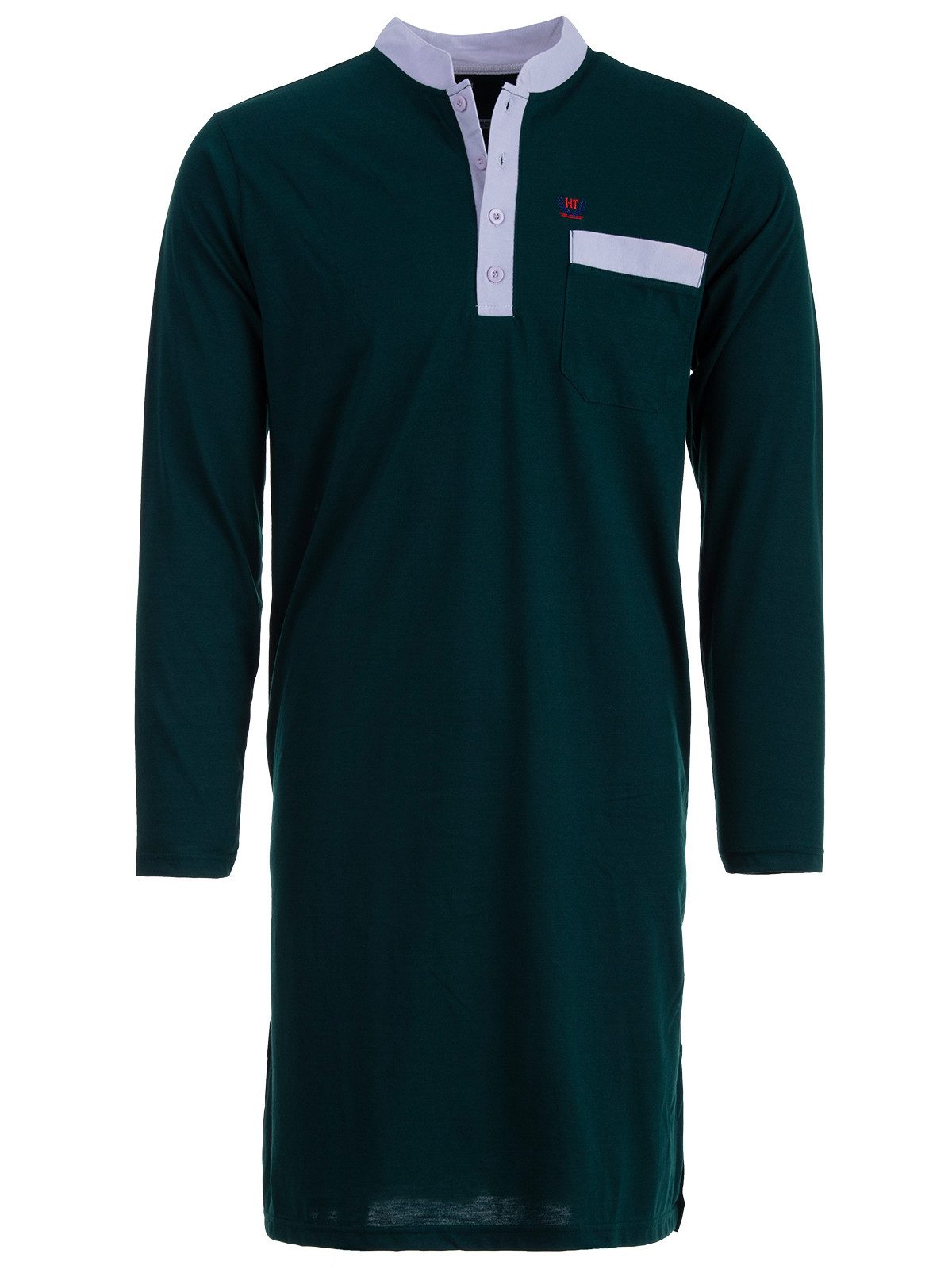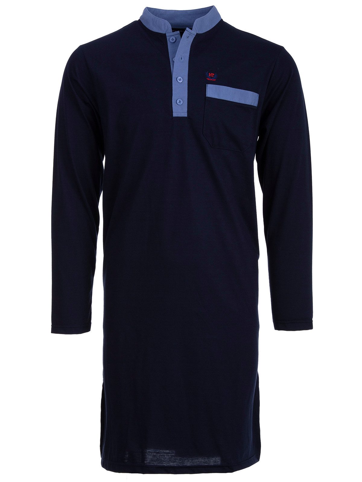 Dieses langärmelige Herren-Nachthemd ist die perfekte Kombination aus hohem Tragekomfort und einem klassischen Design. Farblich abgesetzter Rundhals mit Knopfleiste und Brusttasche unterstreichen die Wertigkeit des Schlafshirts. Dieses Herren Nachthemd ist Dank 80% Baumwollanteil und 20 % Polyesteranteil, wunderbar weich und gleichzeitig formbeständig. Die seitlichen Schlitze machen das Nachthemd besonders bequem. Ideal für Herren, die entspannte Nächte am liebsten in bewährter Henry Terre Qualität genießen.
