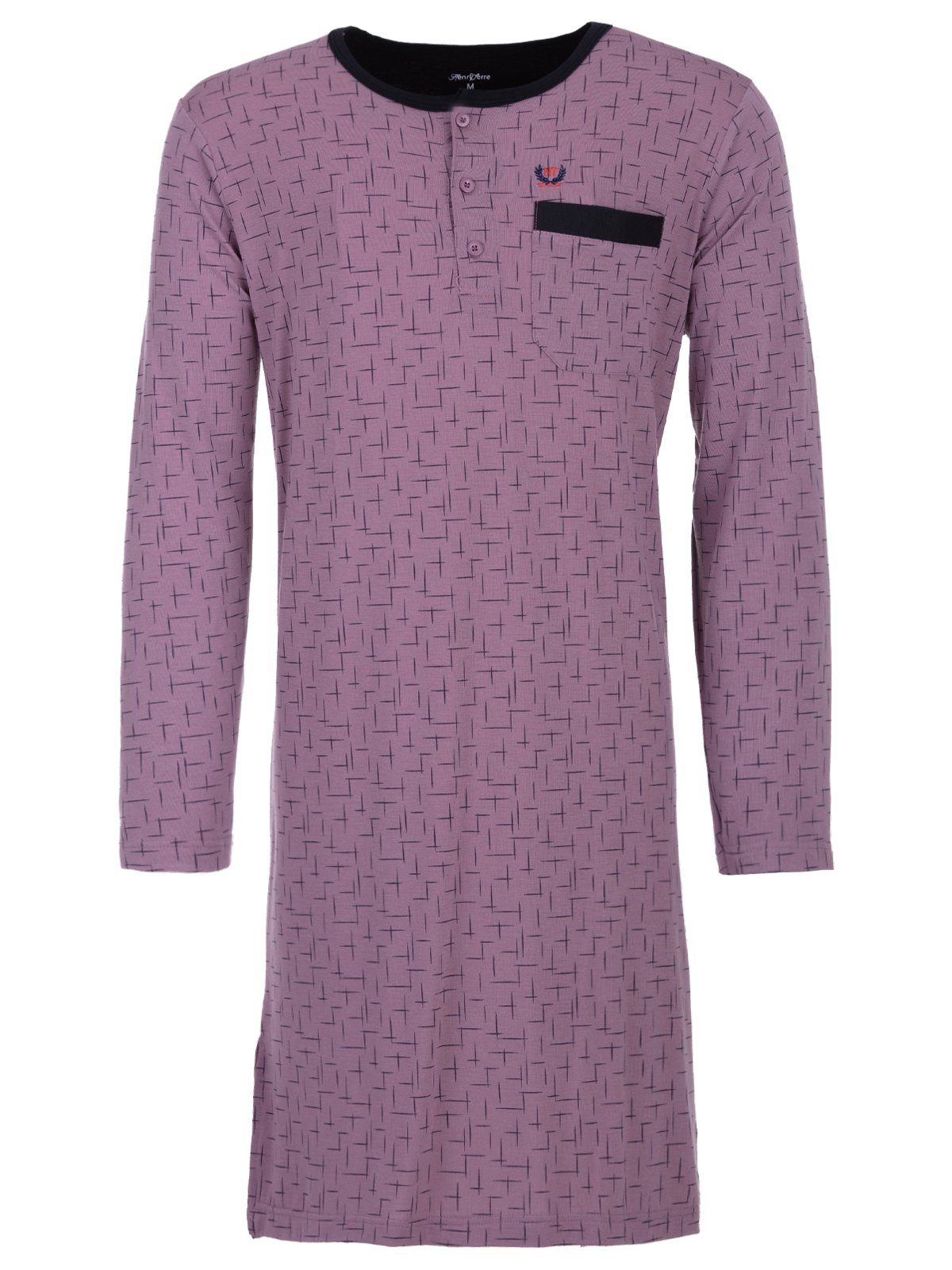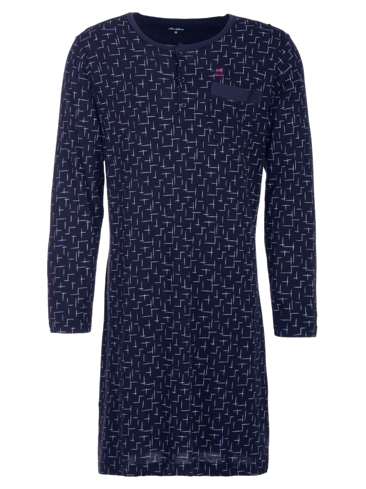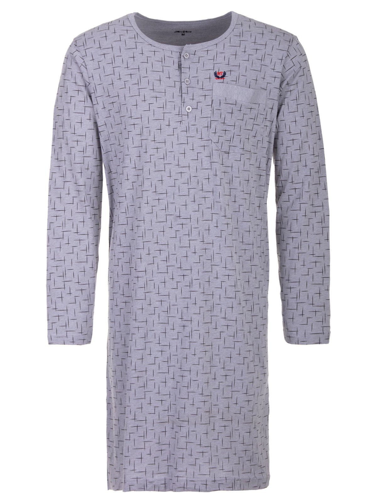 Langarm Nachthemd für Herren in moderner Optik. Das Shirt ist angenehm und leicht auf der Haut zu tragen. Dekorative Brusttasche und Knopfleiste.