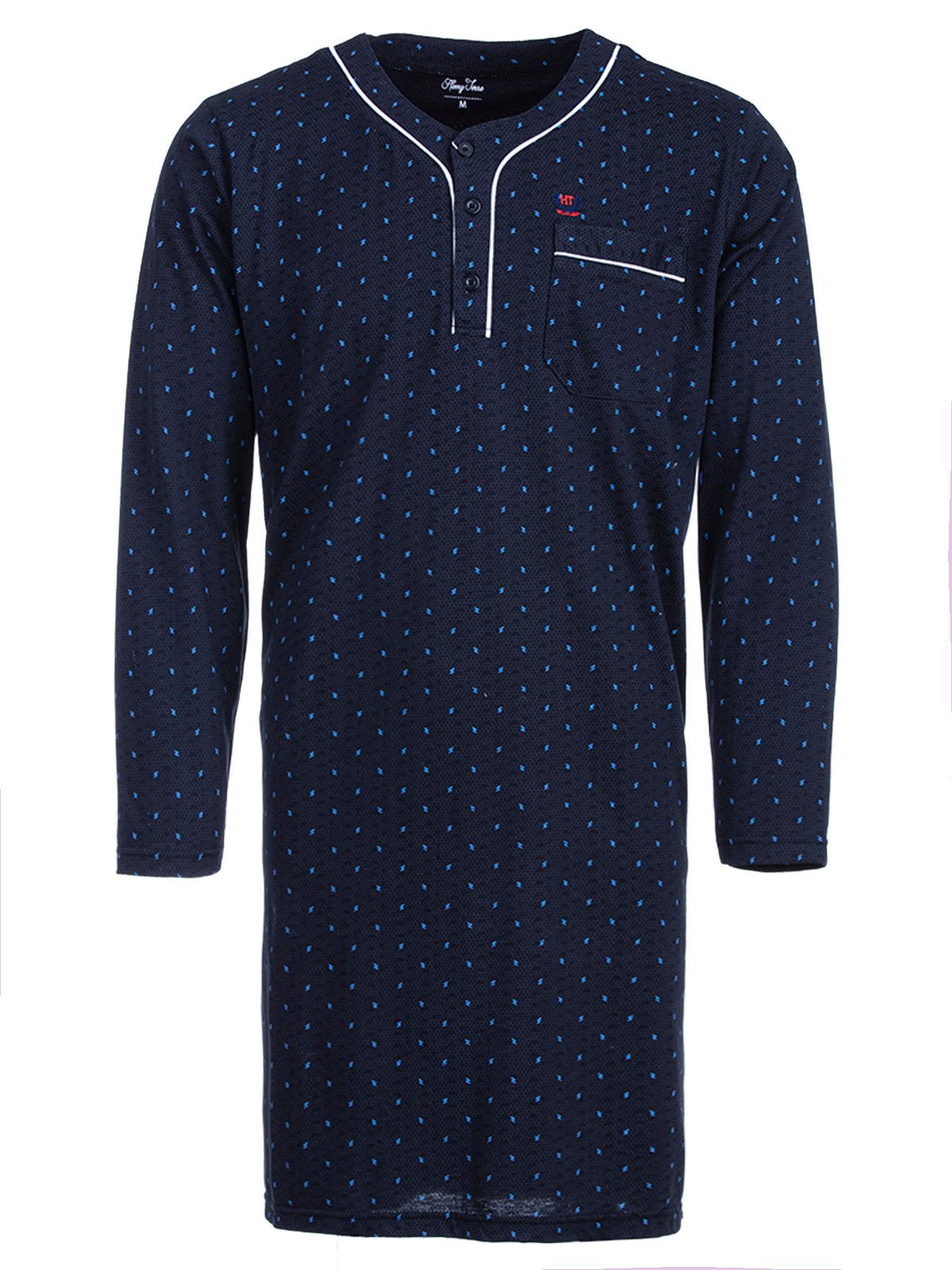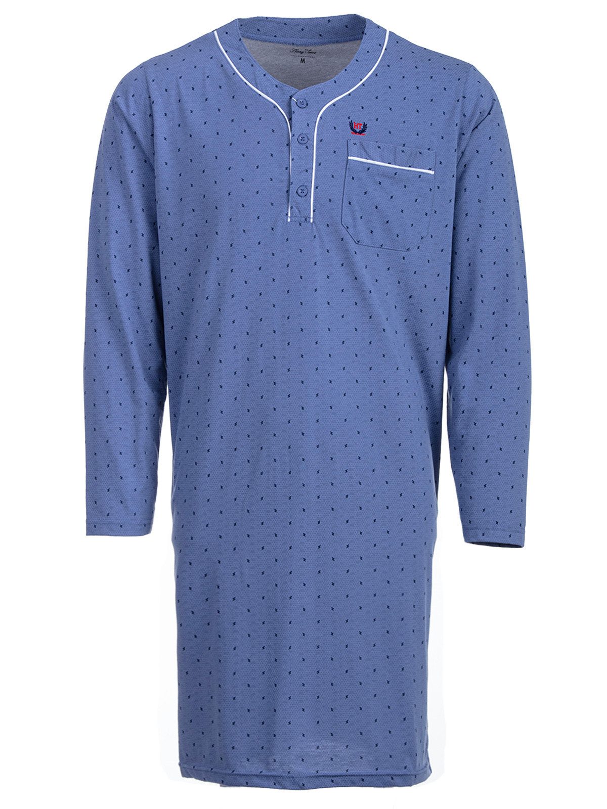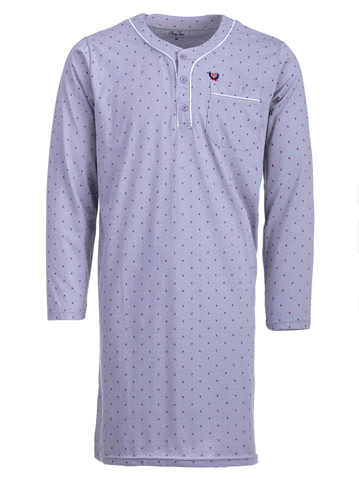 Langarm Nachthemd für Herren in moderner Optik. Das Shirt ist angenehm und leicht auf der Haut zu tragen. Dekorative Brusttasche und Knopfleiste.