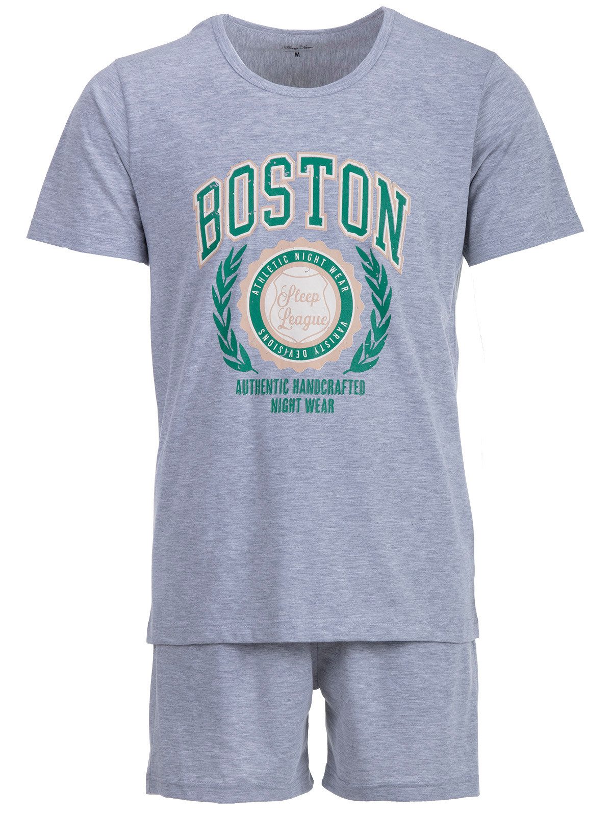 Der Herrenschlafanzug ist angenehm auf der Haut zu tragen. Das Shirt hat einen modernen Look durch den Print und einen Rundhalsausschnitt. Die kurze Schlafanzughose hat einen Dehnbund. Angenehmer Tragekomfort gerade im Frühjahr & Sommer.